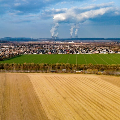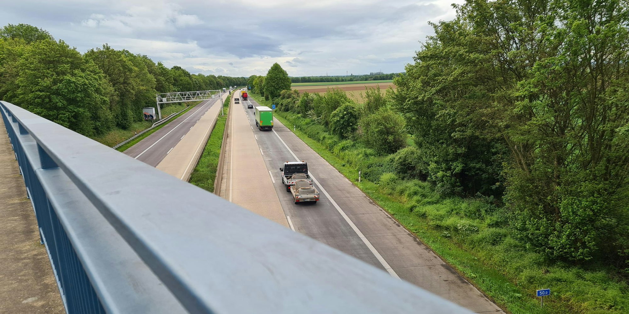 Auf dem Acker rechts der Autobahn 61 soll ein Gewerbegebiet entstehen.