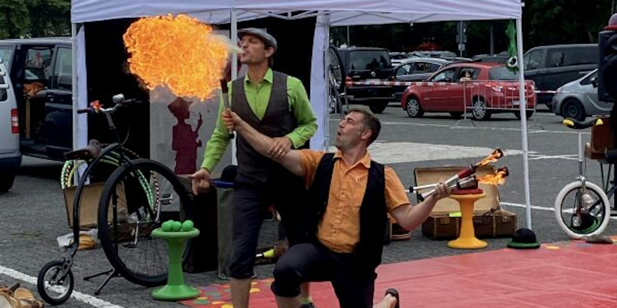 „Die Kinder sind begeistert. Die Aktion ist toll organisiert und nach langer Zeit endlich mal wieder eine Abwechslung für alle“, fand Anja Herrmann, die mit ihren Kindern die Veranstaltung besuchte. Nicht nur die Familien freuten sich. Auch die Künstler waren froh, endlich wieder einen Auftritt zu haben. „Es ist zwar eine Herausforderung, die Kinder aus der Entfernung zum Mitmachen zu animieren, aber es klappt sehr gut“, freute sich der Artist Tobias Kirstgen, der mit seinem Kollegen Daniel Lorenz die Besucher mit Comedy-Jonglage begeisterte.