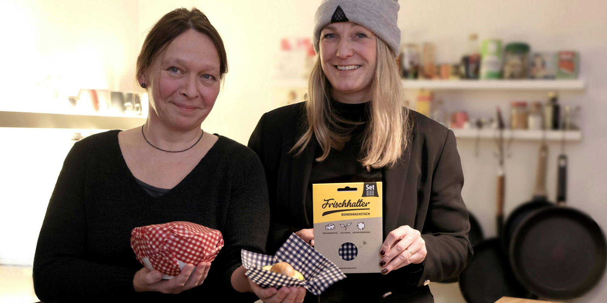 Die Geschäftsführerinnen der Frischhalter GmbH, Bärbel Sandmann und Daniela Schog, mit den Bienenwachstüchern.
