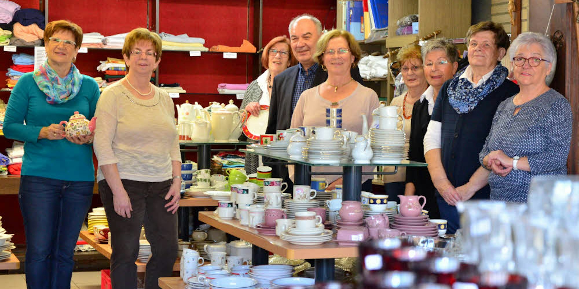 Neben Kleidung kann man im Carisma-Sozialladen auch Haushaltswaren, Deko und mehr kaufen. 16 Frauen arbeiten in wechselnder Besetzung an jedem Öffnungstag im Laden.