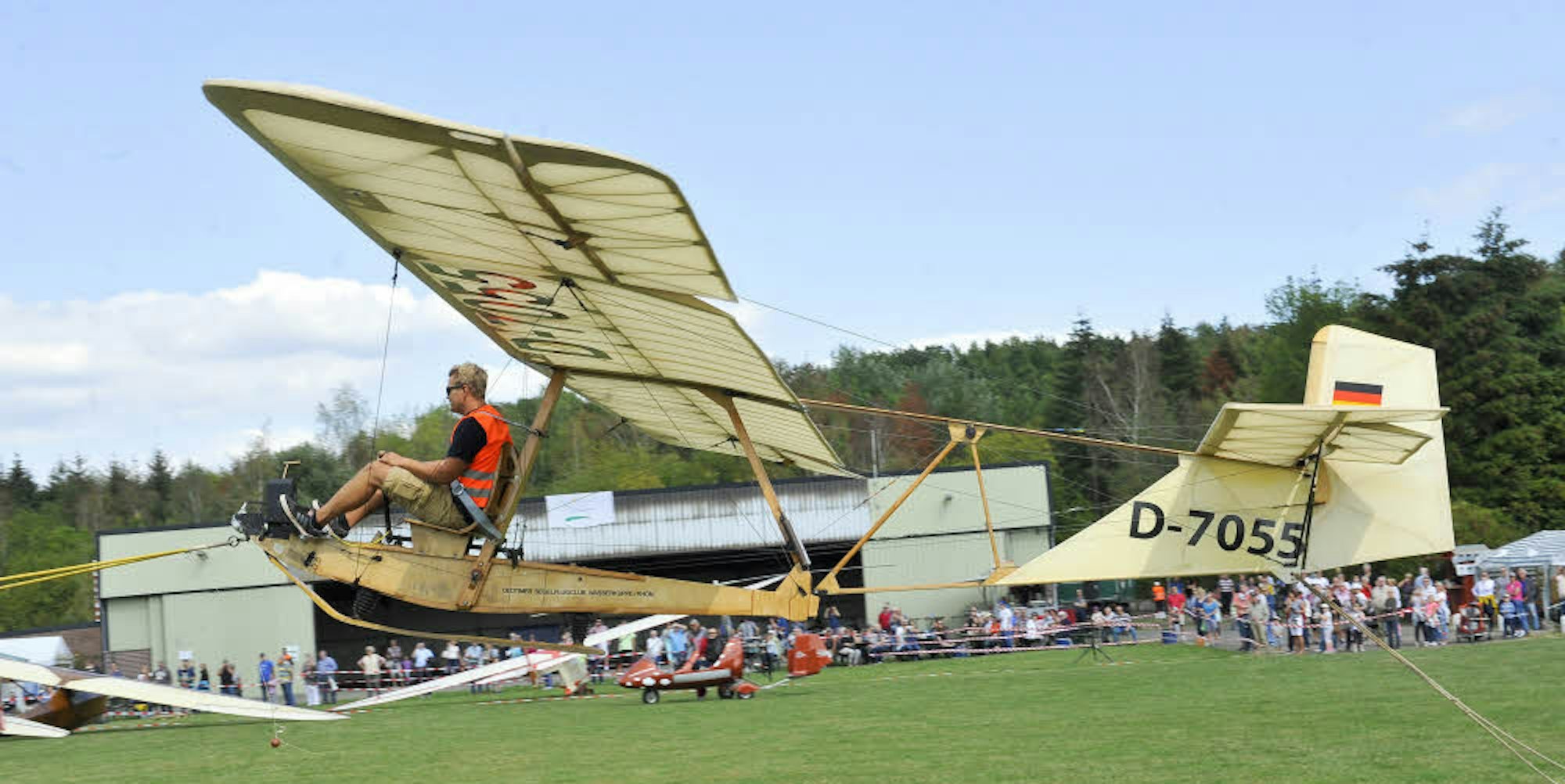 Aber genau so habe man damals das Segelfliegen gelernt, sagte der Vorsitzende Jochen Meurs. Der Ausbilder sei nebenhergelaufen und habe den Flugschüler per Zuruf angeleitet. Idealerweise wurde die Flugzeit mit Starts an einem Hang verlängert. Sogar zur Zugspitze habe man seinerzeit solche Flugzeuge geschleppt, um sie dann zu Tal gleiten zu lassen.