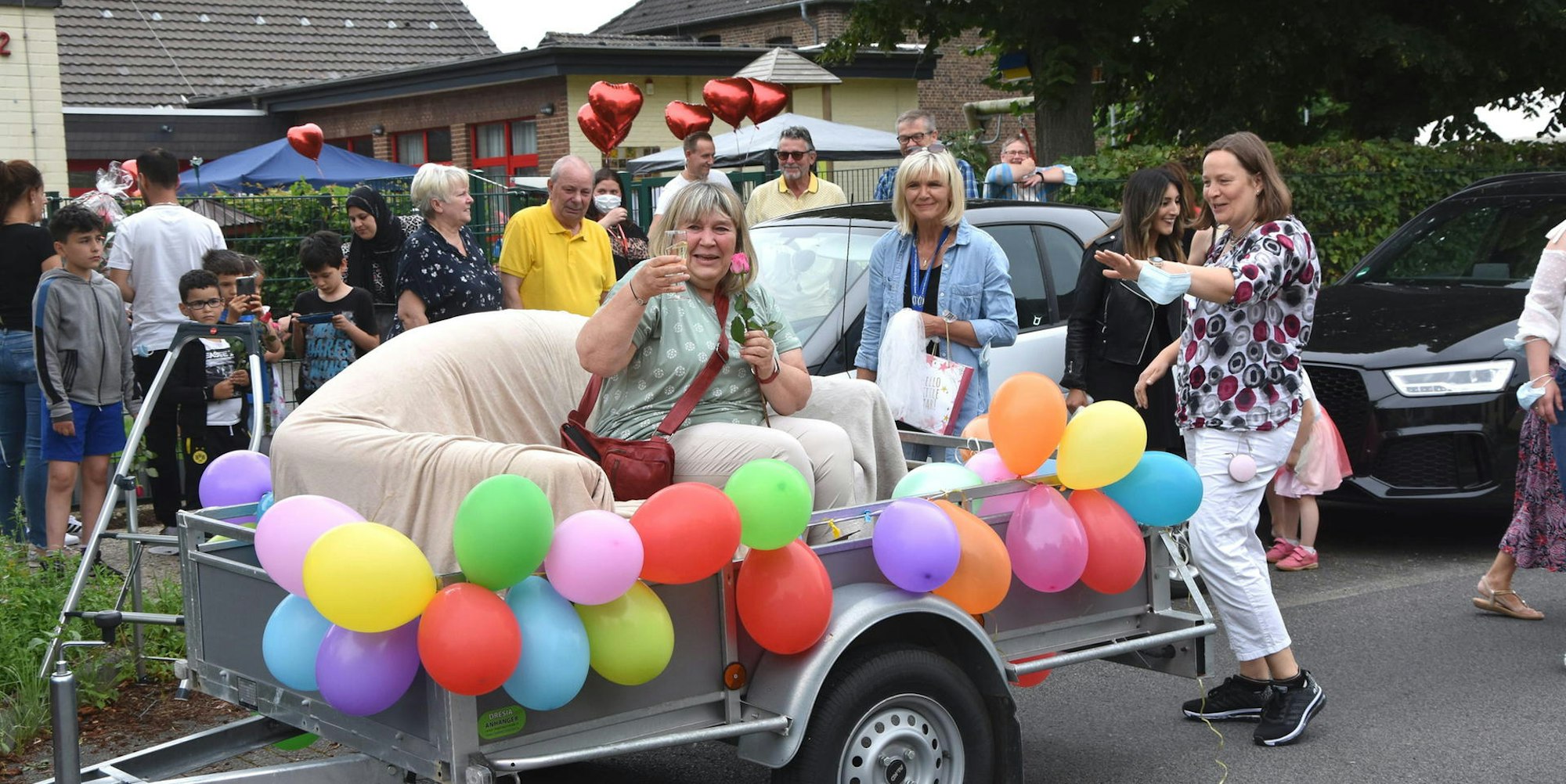 Bergheim-Ahe – Brigitte Spatz-Greifenstein lässt sich nach 43 Jahren nicht mehr so schnell überraschen. Dem Vorstand des Kindergartens Ahe gelang es aber doch: Zu ihrem Abschied hatten die Eltern mit den Erzieherinnen ein Fest auf der Kita-Wiese neben der Pfarrkirche St. Michael organisiert, das Spatz-Greifenstein „sprachlos“ machte.