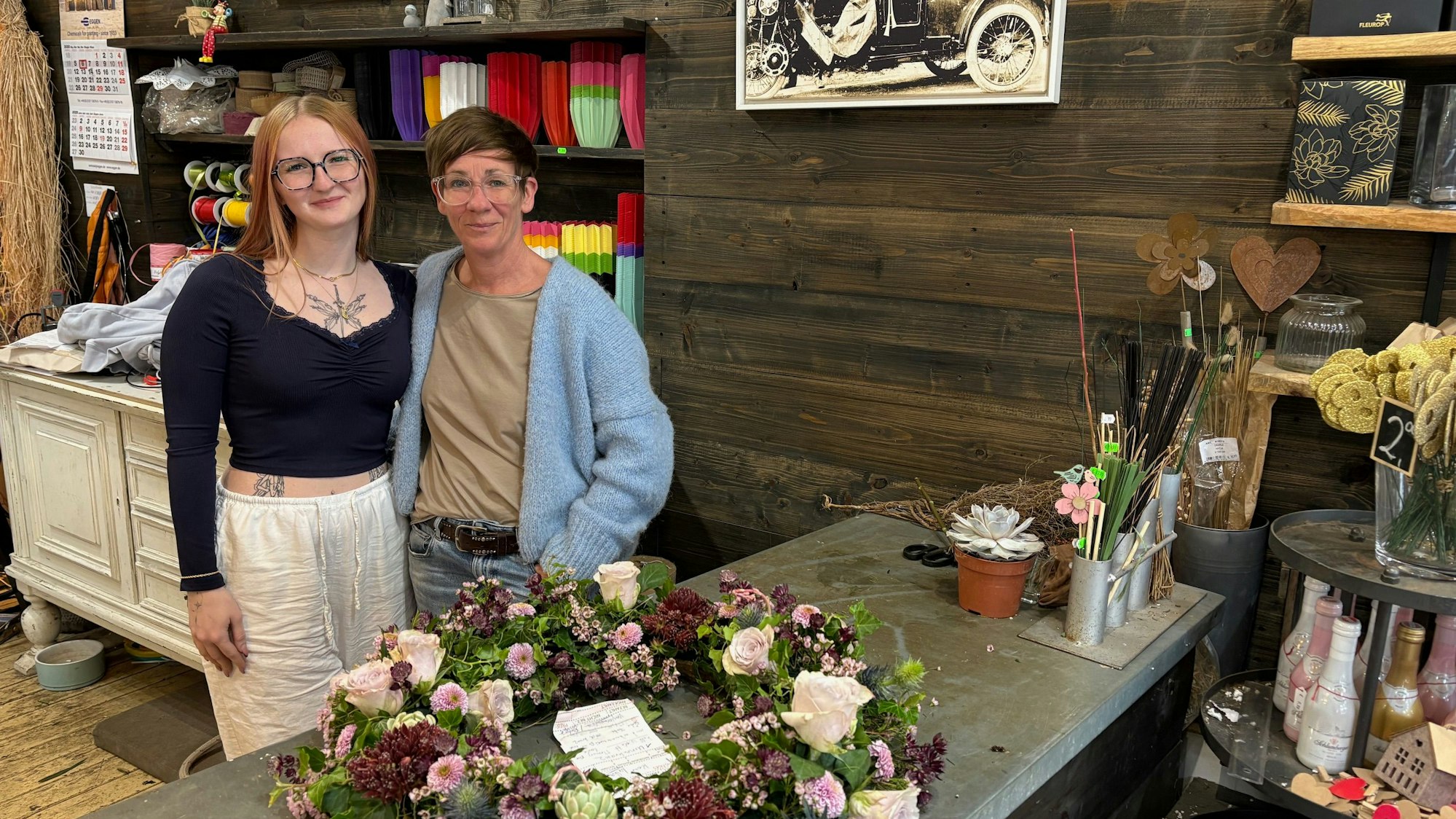 Tanja Kluger (rechts) hat das erfolgreiche Familienunternehmen 2024 übernommen, mit Tochter Luna ist die fünfte Generation bei Blumen Hoven am Start.