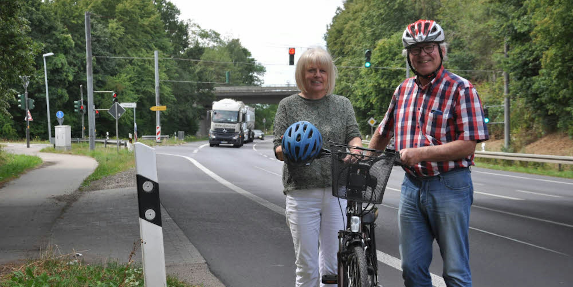 Einen autofreien Sonntag auf der B 477 fordern Elisabeth Hülsewig und Johannes Hübner.