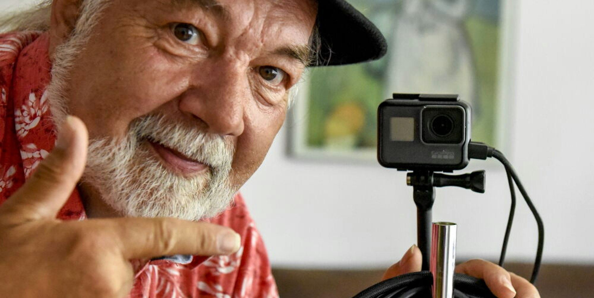 „Dass ich mich mit 67 Jahren noch in digitale Techniken wie Livestream einarbeiten würde, hätte ich nicht gedacht“, sagt Härtel. Als fahrbares Stativ für seine Action-Cam hat er ein Infusionsstativ umfunktioniert. Das habe er bei seinen ehrenamtlichen Jobs im Altenheim entdeckt, da betreue er Senioren mit Musik und Gedächtnistraining. Zuerst habe er befürchtet, dass keiner guckt, mittlerweile habe der bei Facebook geparkte Stream der ersten Sendung mit der Band „Cent’s Underground“ aber mehr als 4500 Klicks.