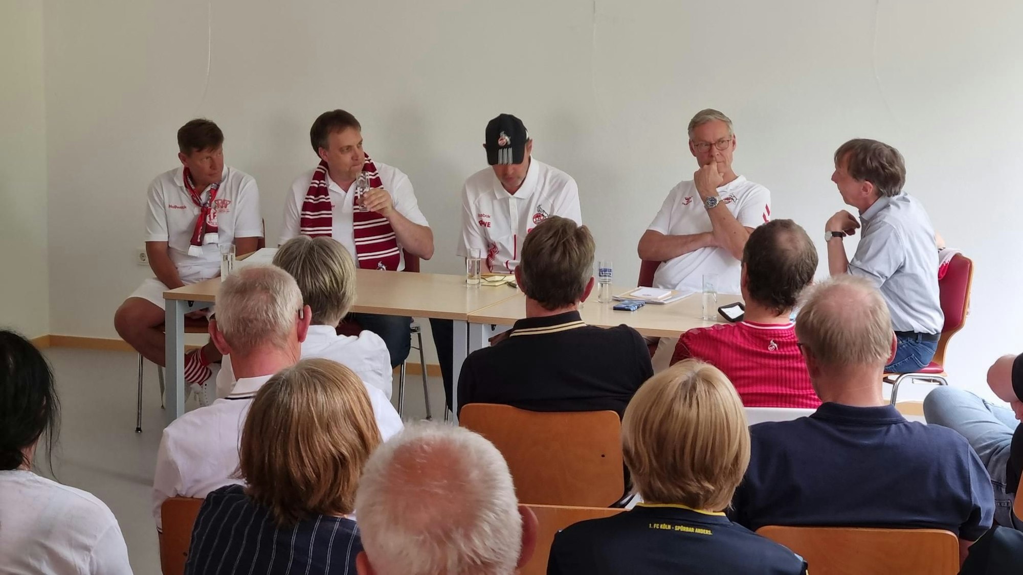 Was wird in den ersten 100 Tagen nach der Wahl des Teams Adenauer passieren, wollte der Vorsitzende des Anhängerclubs, Klaus Esser, von den Kandidaten wissen. Die vorrangigen Ziele von Adenauer sind demnach konstruktive Gespräche mit den Verantwortlichen der Stadt Köln. Ein weiteres Thema wäre die Größe des Rhein-Energie-Stadions. „Wenn mehr Zuschauer von außerhalb nach Köln kommen, profitieren immer mehr von diesen Zahlen, angefangen beim Kiosk-Besitzer“, meinte Adenauer.