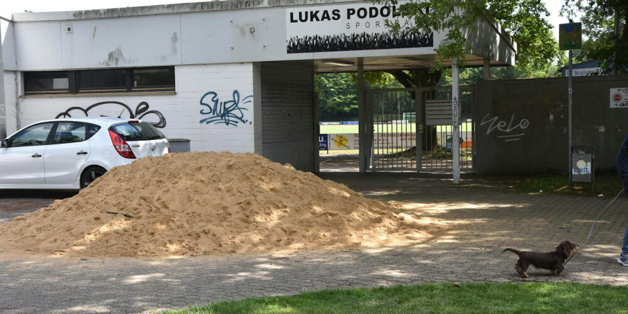 In der vergangenen Woche waren 13 Tonnen Sand vor dem benachbarten Tor zum Lukas-Podolski-Stadion abgekippt worden. Eine offenbar inszenierte Social-Media-Kabbelei zwischen TV-Moderatorin Sophia Thomalla und Fußballer Lukas Podolski war Auslöser der Lieferung. Jetzt sollen die Regenbogenkobolde den Sand für die Buddelkiste bekommen. Am vergangenen Dienstag schaukelte sich die wohl abgekartete Diskussion der beiden im Netz hoch. Podolski schickte Thomalla, die sich zurzeit offenbar in Köln aufhält, werbewirksam einen Döner seiner Imbisskette frei Haus. Die revanchierte sich – ebenso werbewirksam – mit dem Sand.