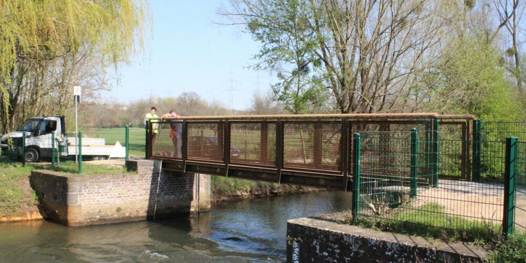 Seit 2019 gesperrtNeue Brücke am alten Wehr in Bergheim endlich fertiggestellt