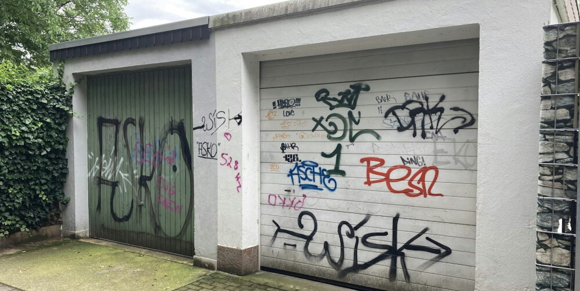 Anwohner aus Quadrath-Ichendorf haben häufig mit Schmierereien auf ihren Häusern und Garagen zu kämpfen.