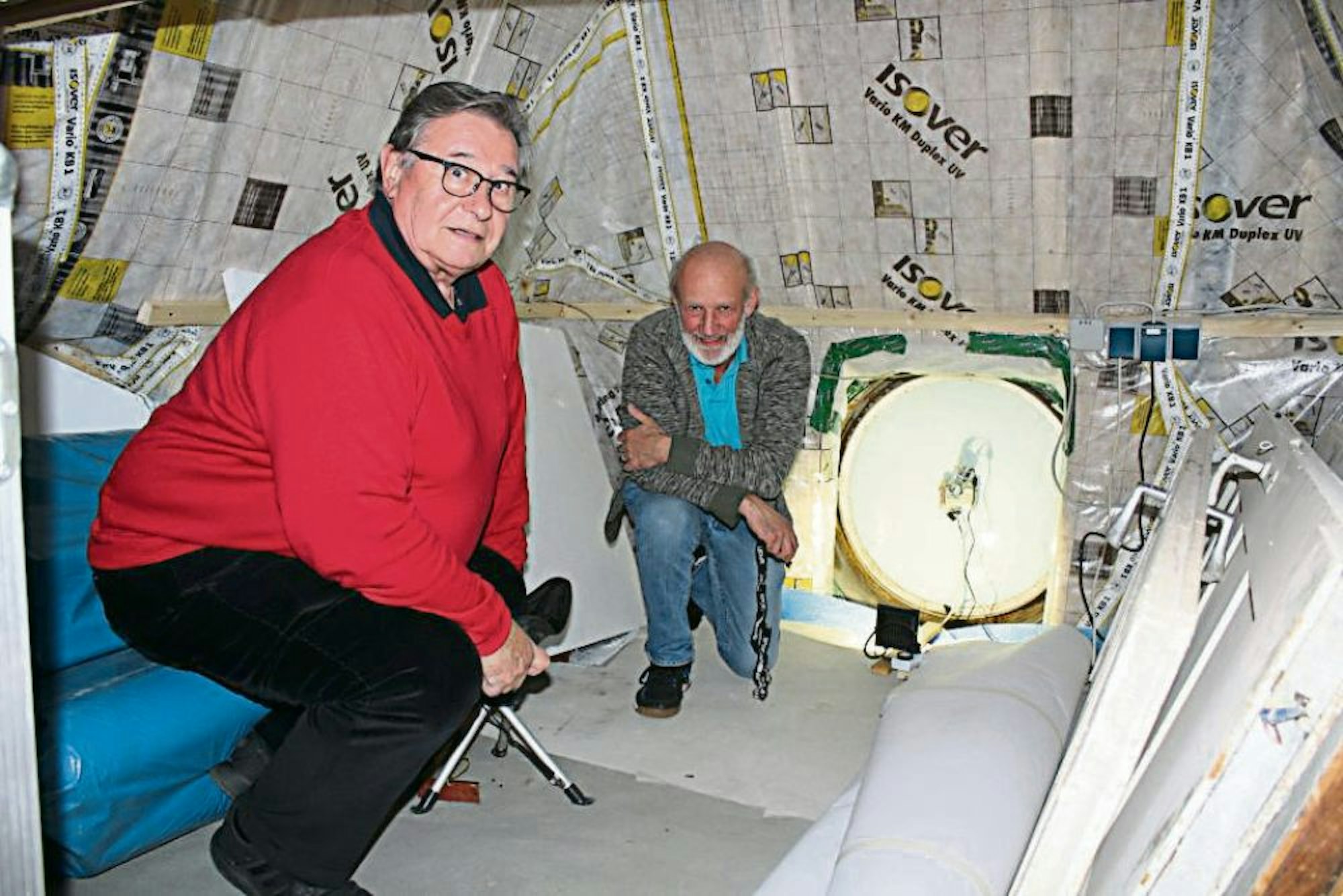Peter Keuthmann und Harald Bous (rechts) haben die Bahnhofsuhr wieder in Gang gebracht.