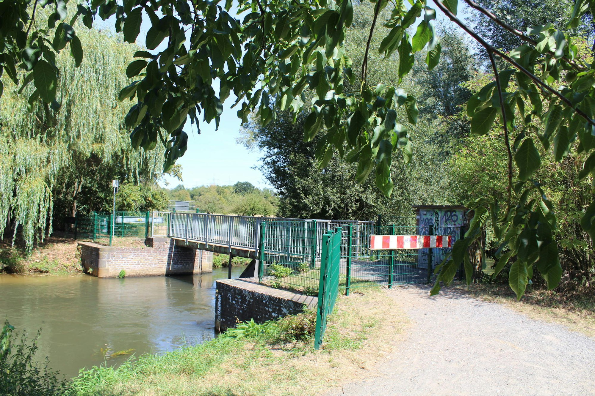 Die Alte Wehrbrücke über den Erftflutkanal bleibt noch bis Dezember gesperrt.