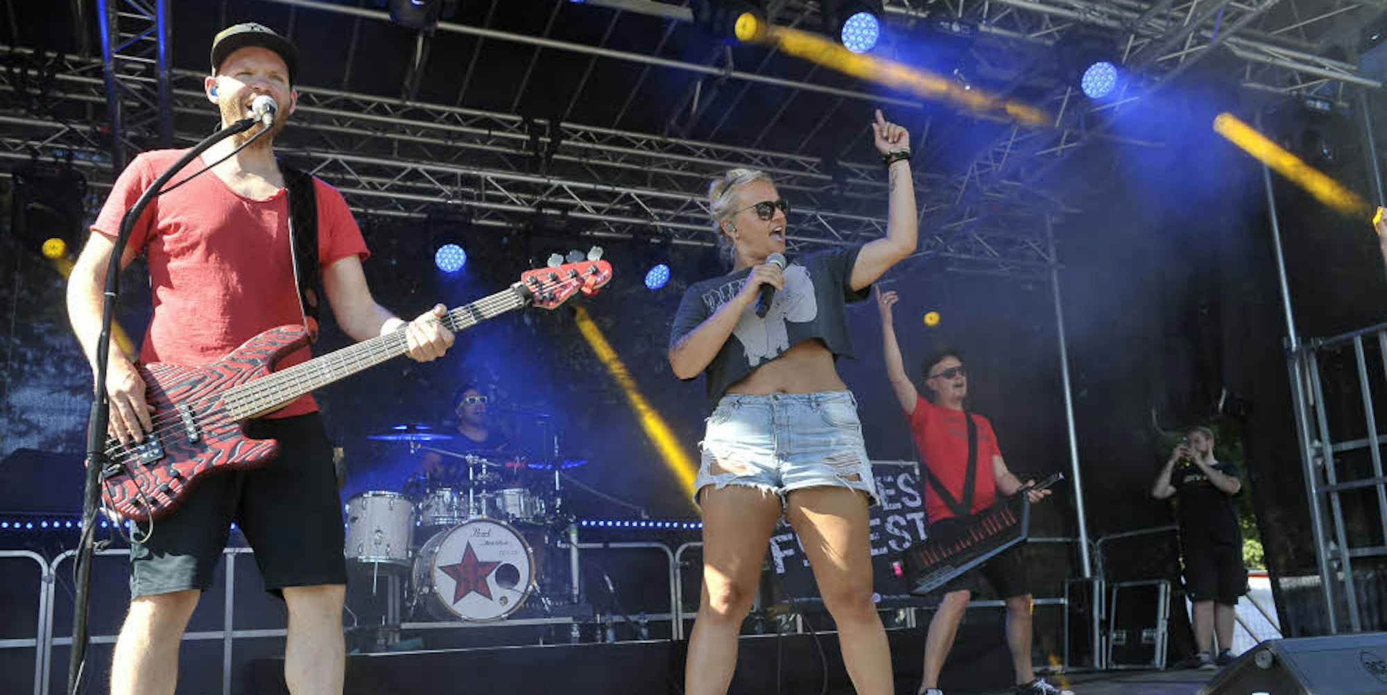 Die Band gibt auf der Bühne ungeachtet der brennenden Sonne Gas und heizt den Zuhörern so richtig ein. Als „energetisch“ hatte Bassist Vinzent Themba, der sonst gern auch bei den Jazzern unterwegs ist, die Musik von Kempes Feinest beschrieben.
