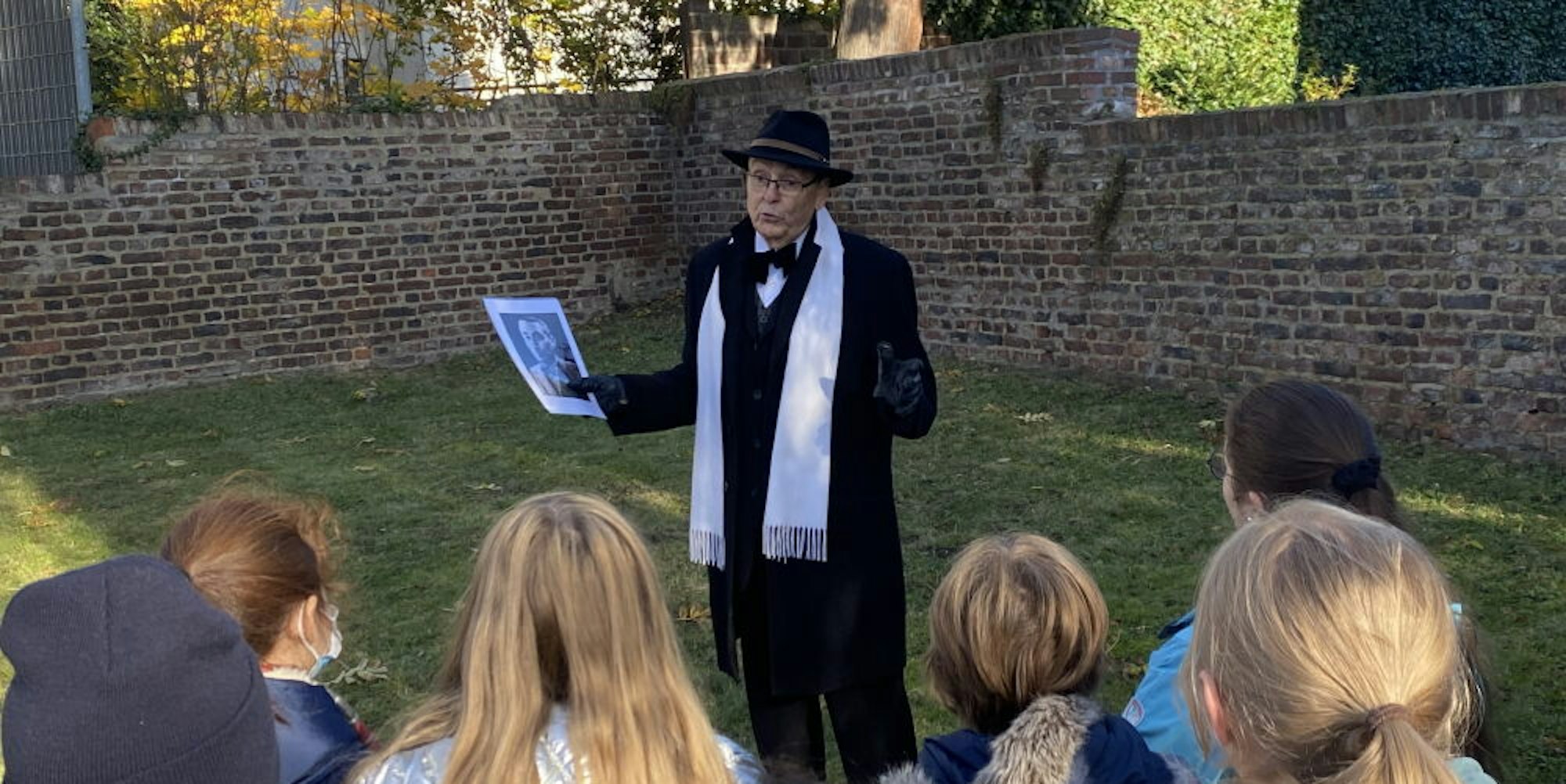 Am jüdischen Friedhof erzählte Frank-Rainer Hildenbrand aus dem Leben des Juden Karl Schnog.