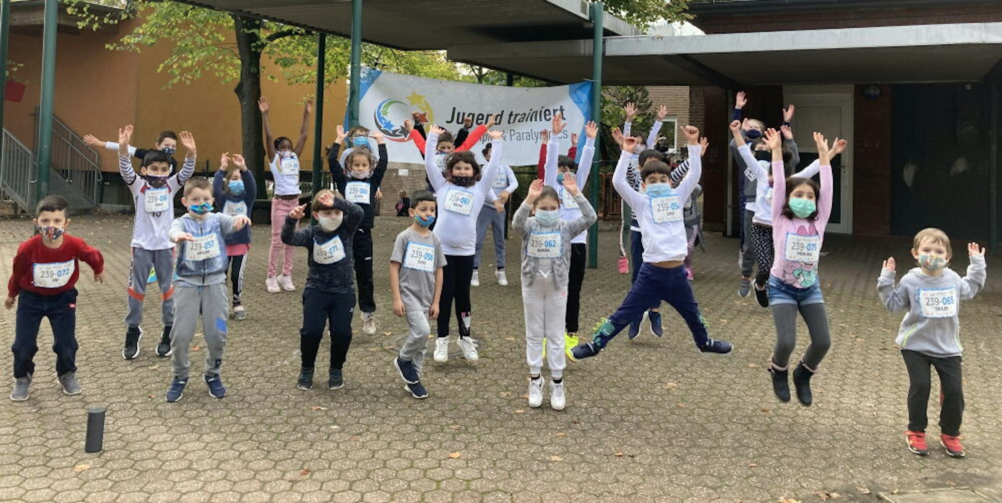 Während der Schulschließung im Frühjahr wurde die Zeit genutzt, um das Schullied „Wir gehören zusammen“ neu zu arrangieren. Dann haben erst die Lehrkräfte und anschließend die Kinder in unzähligen Schulhof-Sportstunden einen passenden Tanz eingeübt. Am bundesweiten Aktionstag diese Woche zeigten die Kinder was sie gelernt hatten.
