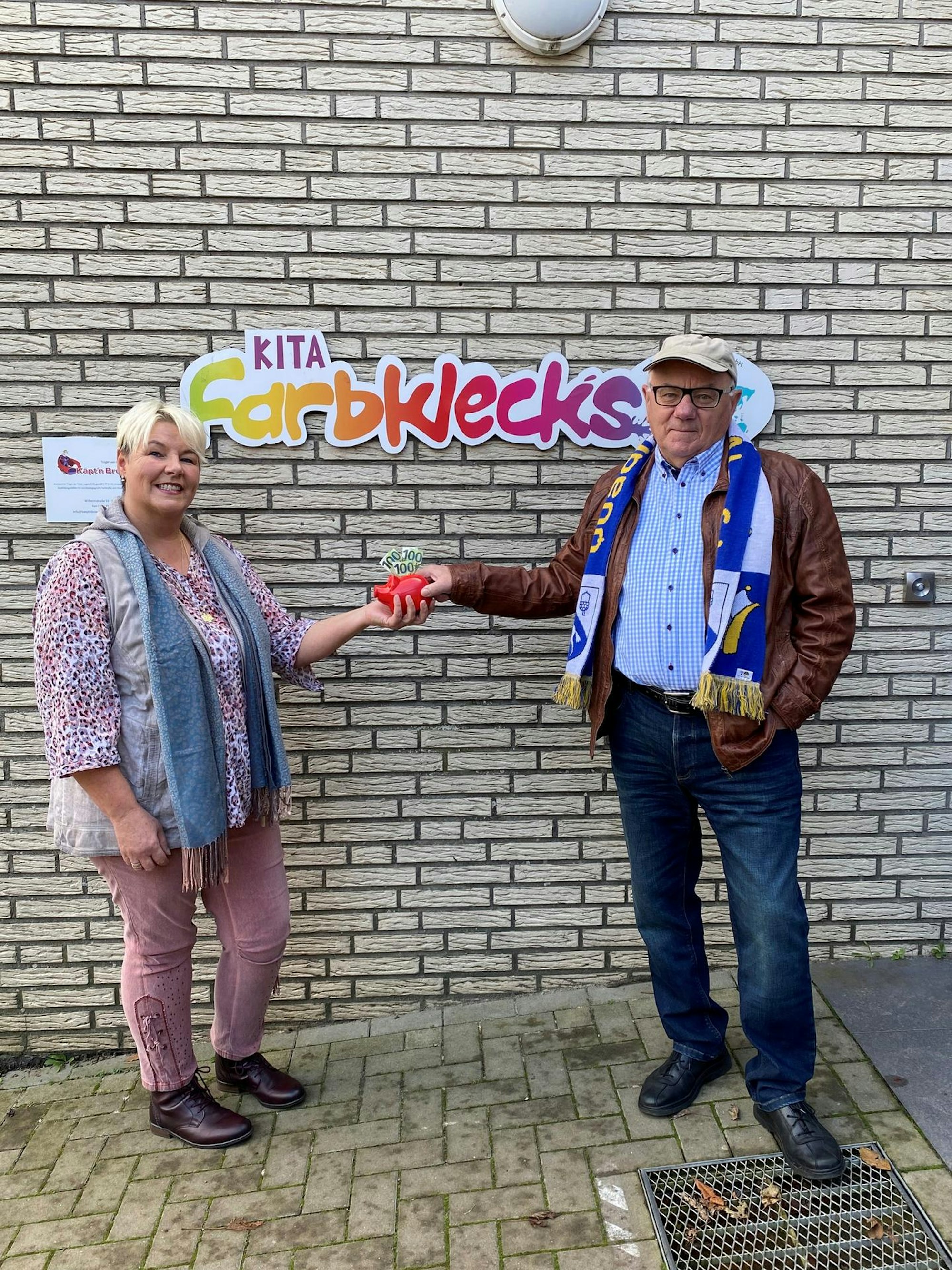 Wilhelm Philippi von den Maiblümchen überreichte der stellvertretenden Kita-Leiterin Renate Hensgen die Spende.
