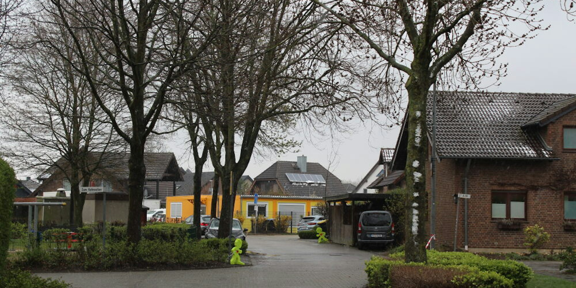 Der Bedarf in Kita-Plätze ist hoch in Bergheim, so auch in Fliesteden. Die Kindertagesstätte Schreihäls reicht nicht mehr aus, weshalb im rund 2000 Einwohner starken Stadtteil eine weitere vierzügige Einrichtung entstehen soll. Nur das dafür passende Grundstück hat die Stadtverwaltung noch nicht gefunden. Deshalb hat sie für viereinhalb Jahre die Fläche Am Buschfeld gepachtet. „Aufgrund der zeitlichen Befristung zur Nutzung des nun verfügbaren Grundstücks wurde eine Schnellbauweise gewählt“, schreibt die Verwaltung. Das sei vergleichsweise günstig und die Container seien schnell auf- und wieder abzubauen. Um das gelbe Gebäude sind Zäune errichtet und Hecken angepflanzt worden. Auch seien „nachbarschaftliche Belange“ nicht verletzt worden und es gingen vom Bauvorhaben keine unzumutbaren Beeinträchtigungen aus, betont die Verwaltung.