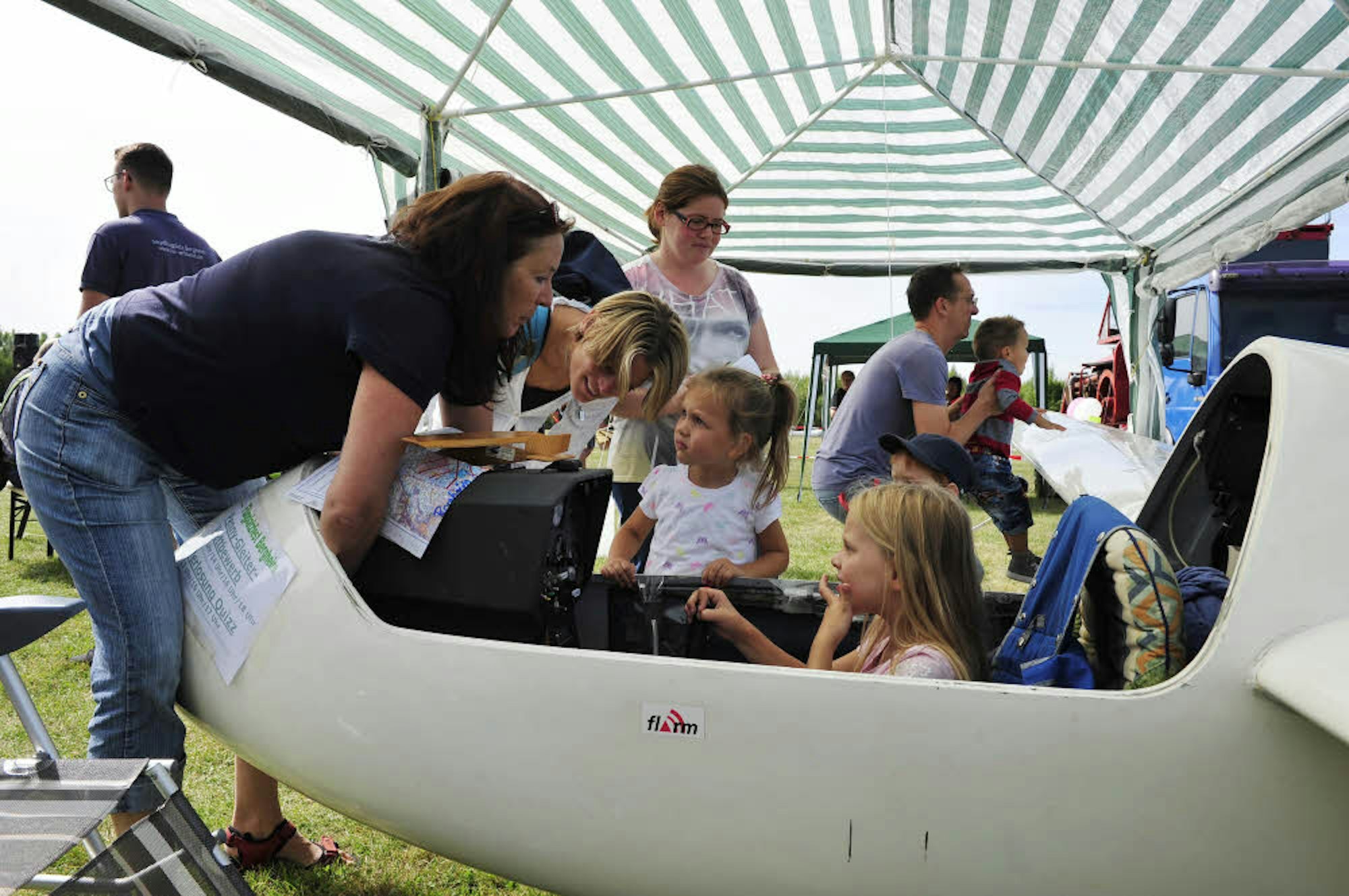 Nicole Lauer (l.) führte auch ganz jungen Nachwuchs in die Welt der Segelfliegerei ein. Zumindest am Boden konnten sich junge und ältere Besucher auch mal an den Steuerknüppel setzen.