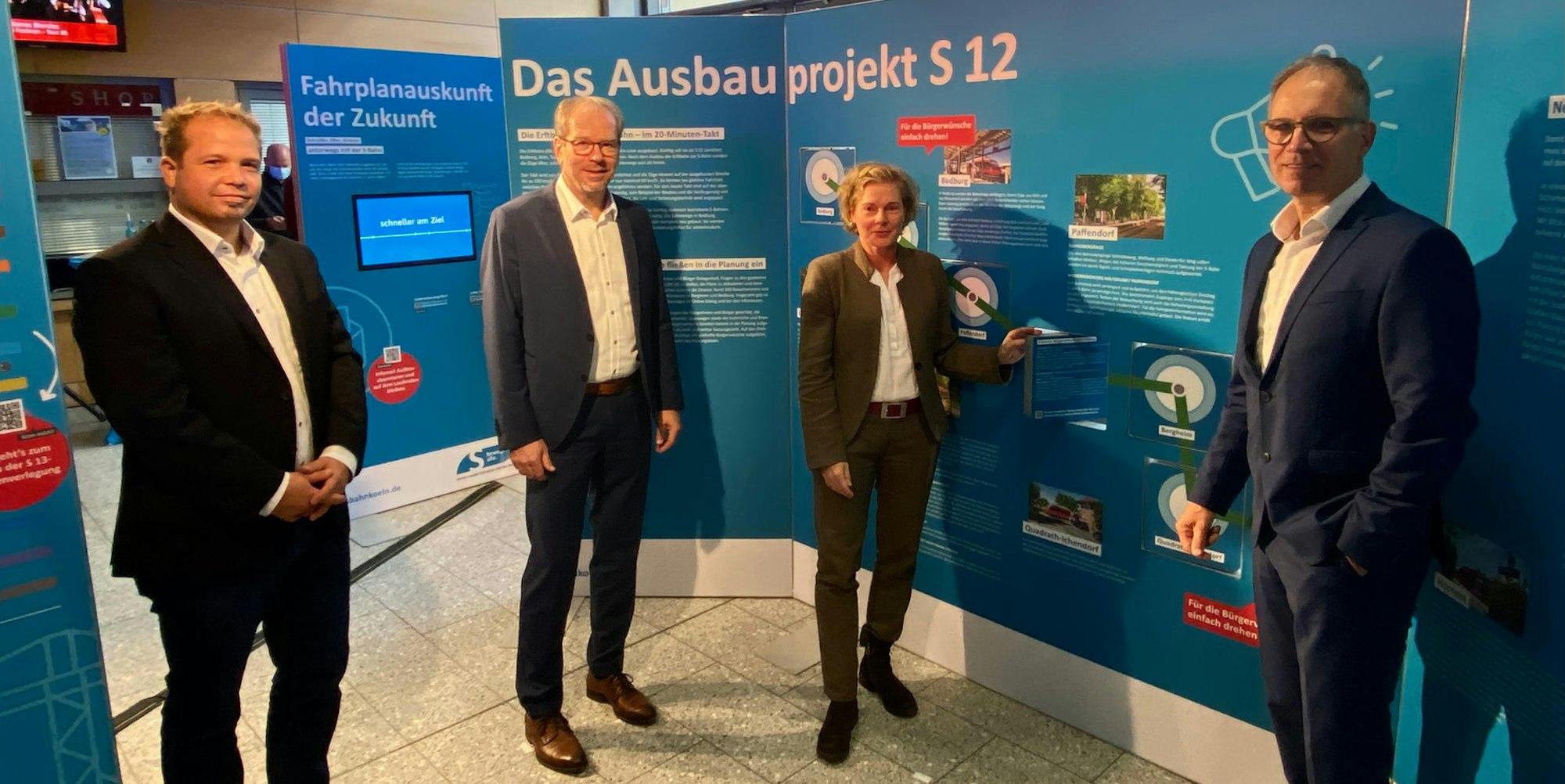 Die Schau zeigt verschiedene Teile des Ausbauprojektes im Knoten Köln, zum Beispiel den Ausbau der Erftbahn (RB 38) zu einer S-Bahn. „Ein Teil der Bevölkerung zieht von Köln in umliegende Städte wie Bergheim. Jedoch gibt es keine schnellen Verbindungen in diese Städte. Eine Neukonzeption des S-Bahn-Netzes ist, was die Region für die Zukunft benötigt“, sagte Dr. Norbert Reinkober, Geschäftsführer Nahverkehr Rheinland (NVR). Die künftige S 12 wird alle 20 Minuten zwischen Bedburg und Köln unterwegs sein. Derzeit fahren die Regionalzüge auf der Strecke im 30- beziehungsweise 60-Minuten-Takt.
