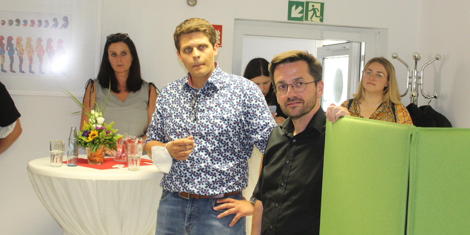 Thomas Kutschaty (r.) besuchte die Bergheimer Hebammenambulanz. Auch Aaron Spielmanns (l.) war gekommen.