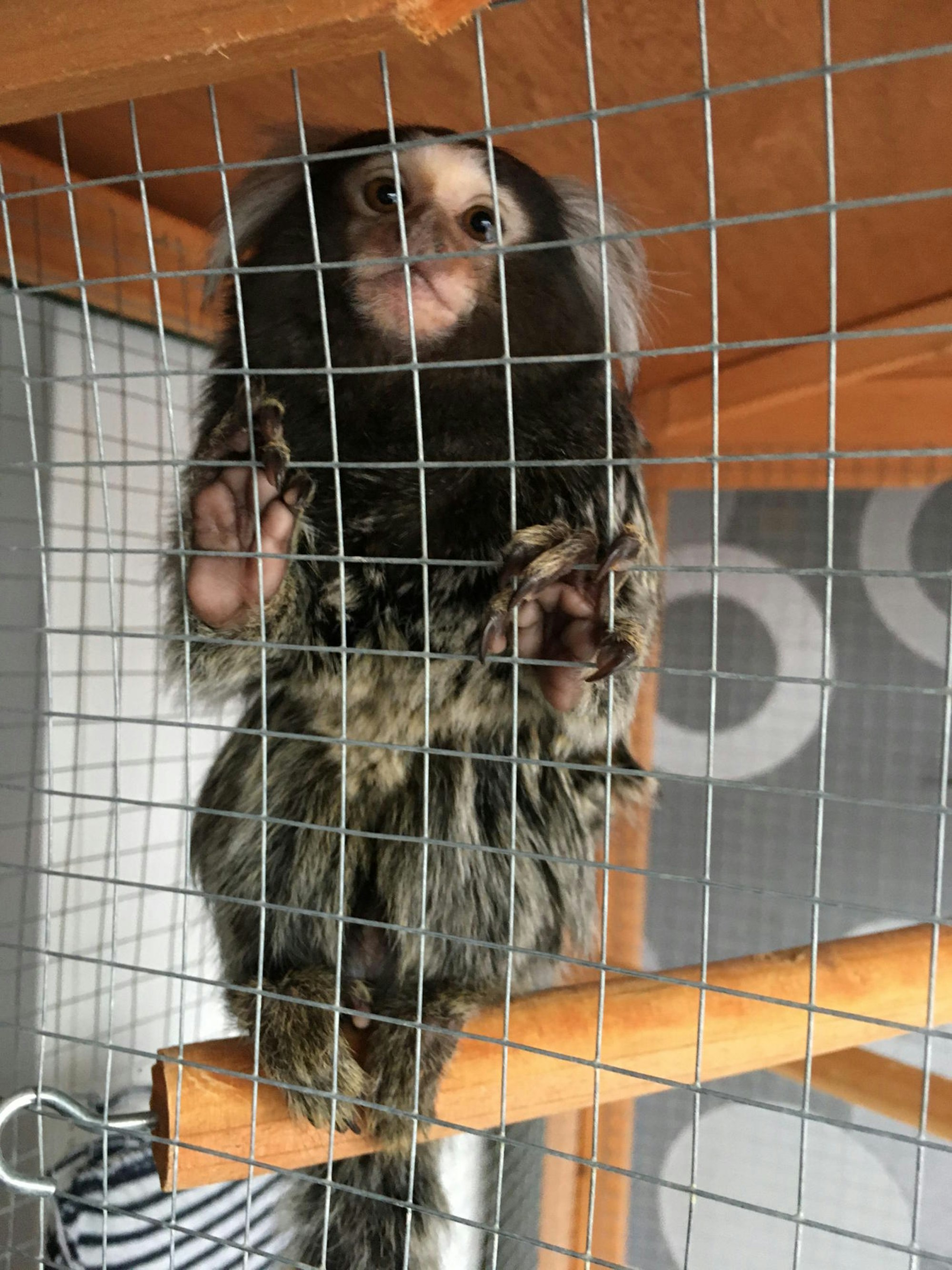 In einem Käfig fristete der kleine Affe sein Dasein.