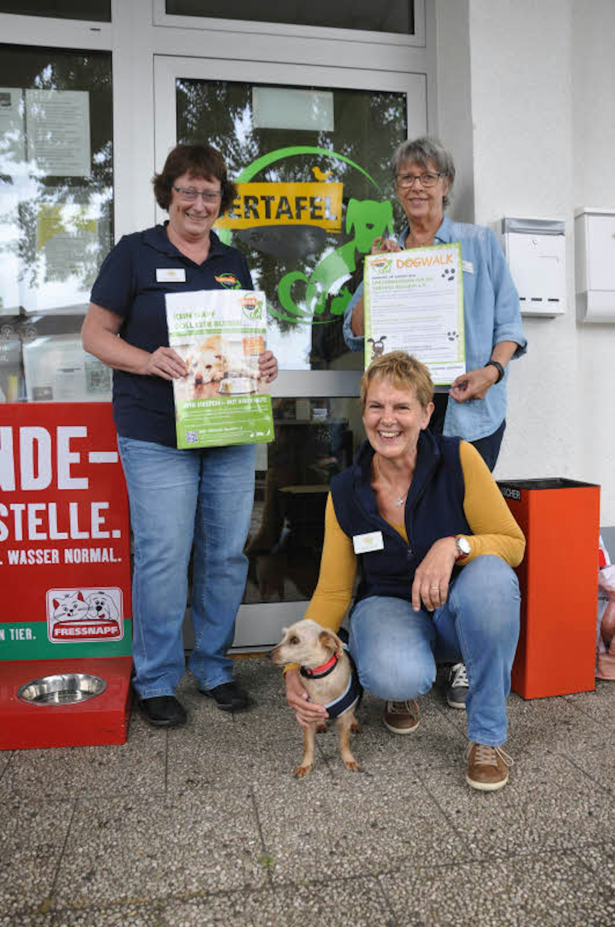 Auf den achten Dogwalk freuen sich Dagmar Oetken (l). Birgit Korfmann und Annette Quadt (vorne) vom Tiertafel-Vorstand.