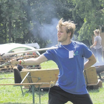 Bergheim-Paffendorf – Ein junger Mann names „Hut“, der so heißt, weil er ständig einen trägt, ruht am Freitagnachmittag mit ausgebreiteten Armen von der Nachtwache aus. In der Sonne liegt er auf einem der zunehmend verwitterten Kanalrohre rund um den Lagerfeuerplatz. Teilnehmer sitzen zusammen, plaudern, holen sich im großen Kneipenzelt was zu trinken – die Bionade lässt grüßen. Im Küchenzelt hört man allenfalls hinter der Plane ein Rumoren, bis zum Abendessen ist es noch weit.
