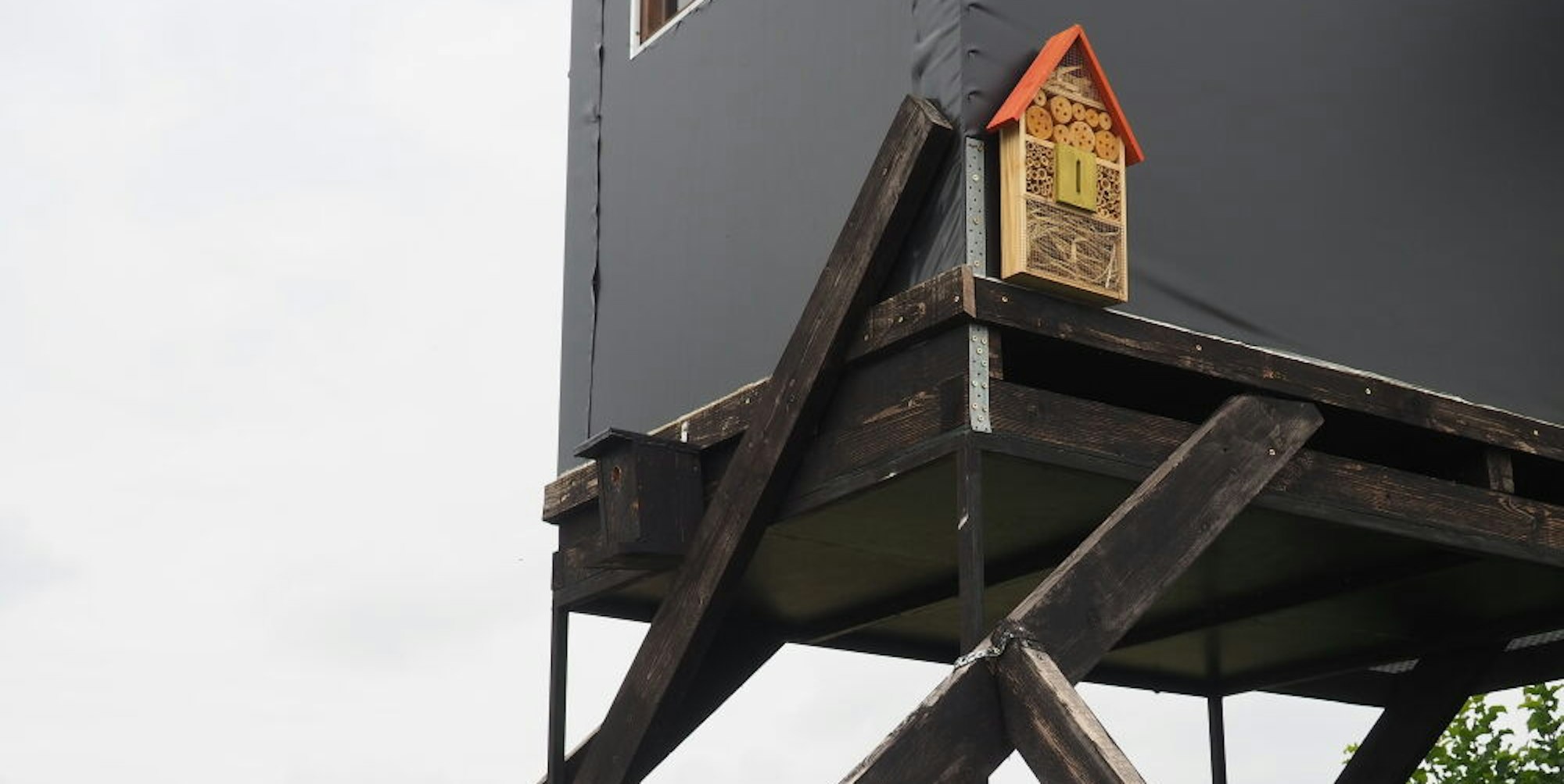 Gerd Dieckmann hat Nistkästen und Insektenhotels an seinen Hochsitzen angebracht.