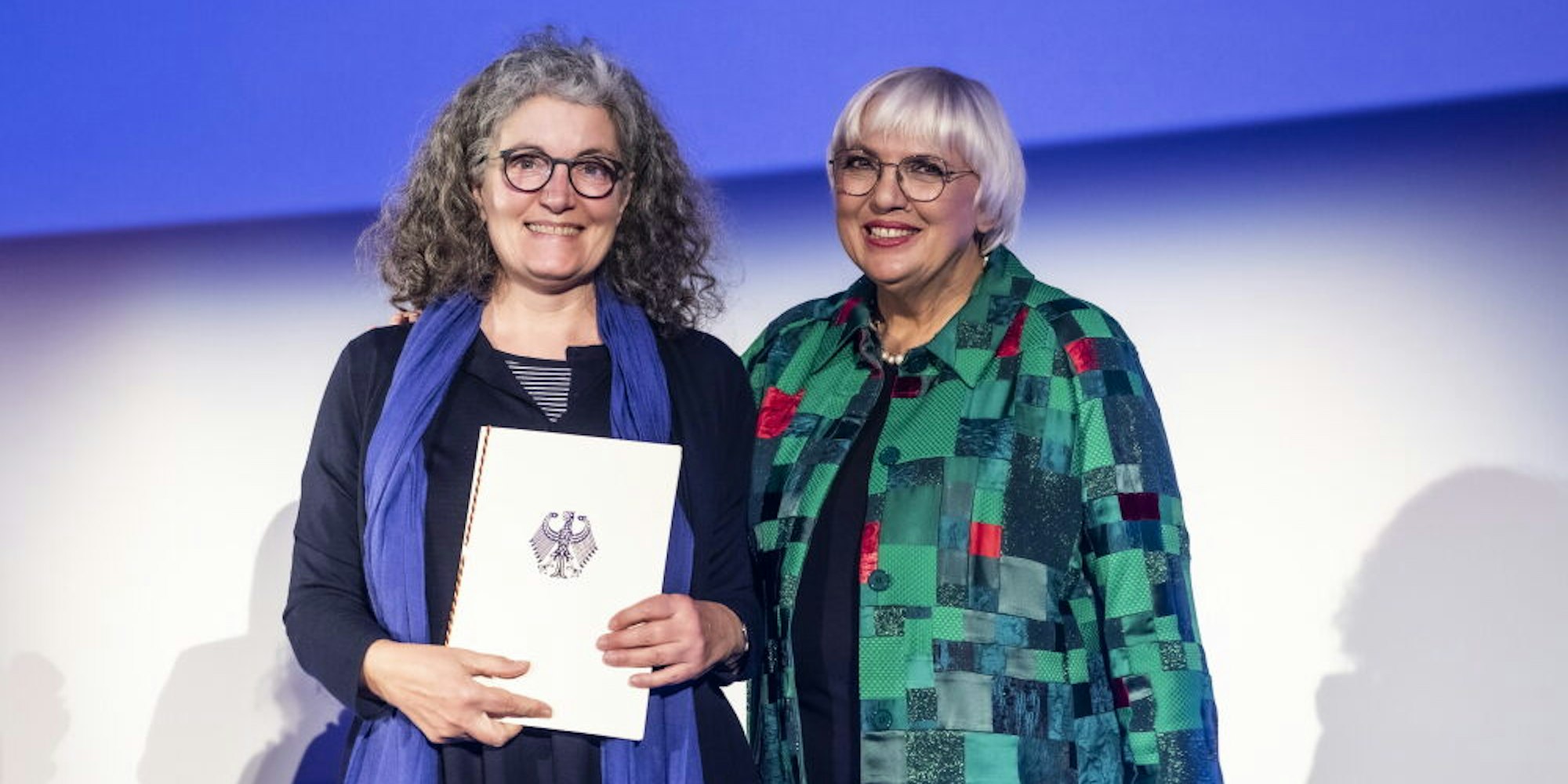 Zoom-Vorstandsmitglied Monika Bremen (l.) und Kulturstaatsministerin Claudia Roth bei der Preisübergabe.