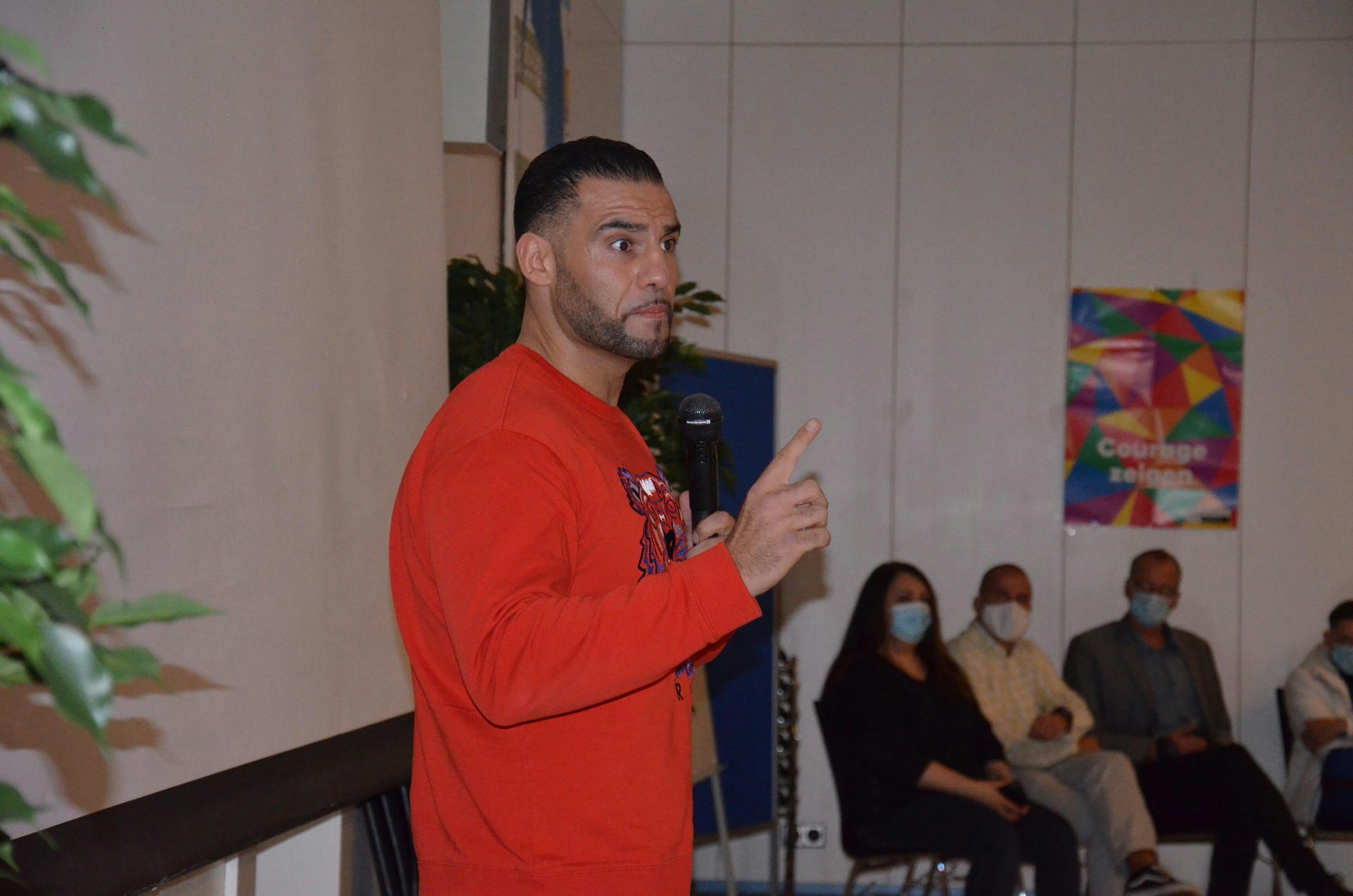 Er zeigt die Narben an Bauch und Rücken und er erklärt, dass er als Profi-Boxer vor dem Karriereende stand, weil seine Hüften lädiert waren. Immer wieder sei er aber aufgestanden, habe sich Ziele gesetzt und erreicht, die andere für absurd gehalten hätten. Das habe ihm zu dem gemacht, was er heute sei: ein erfolgreicher Mann, der mit sich im Reinen ist und nach vorne blickt. Diese Botschaft kommt bei den Zuhörern an, von denen viele ebenfalls ausländische Wurzeln haben und noch auf der Suche nach dem eigenen Weg und beruflichen Zielen sind. Charr fragt die Schüler nach ihren Ambitionen und fordert dazu auf, diese mit Willen und Leidenschaft zu verfolgen. „Heute sind die Möglichkeiten ganz andere als zu meiner Zeit. Ihr könnt eine Schule besuchen und dürft arbeiten. Nutzt das“, sagt er.