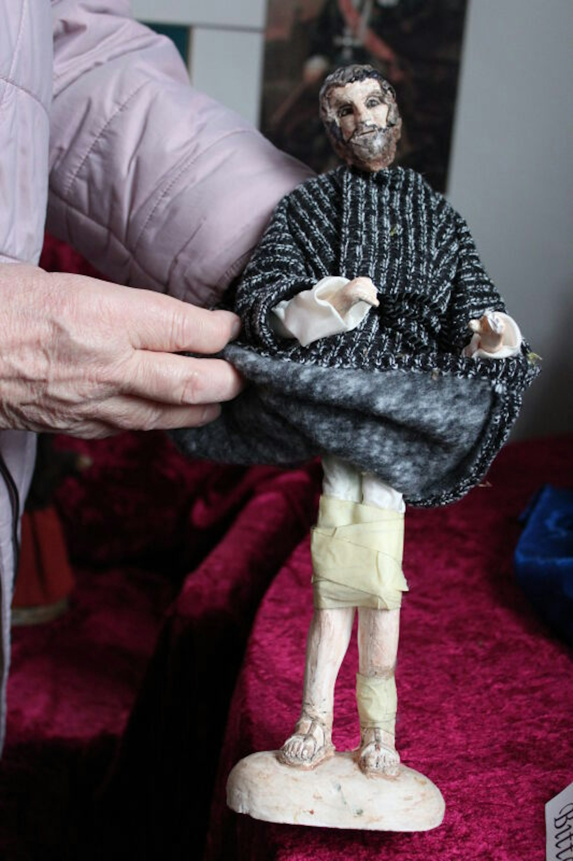 Aus einer Mischung von Sägespänen und Leim hat die Künstlerin sie modelliert, möglicherweise hat sie sogar Fragmente der alten Figuren verwendet. Ob sie auch die Kleidung gefertigt hat, ist allerdings fraglich.