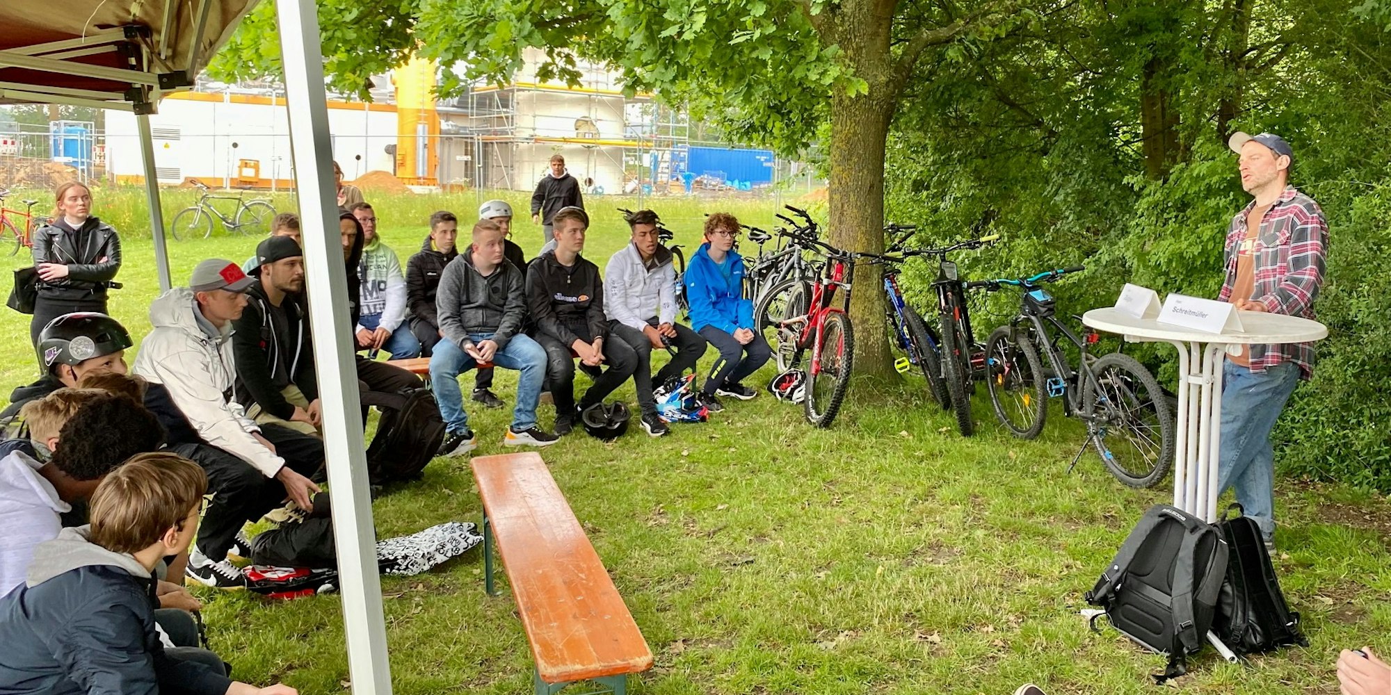 Da diese der Baustelle weichen musste, soll nun daneben auf einer rund 500 Quadratmeter großen Fläche eine moderne Dirt-Bike-Anlage entstehen, finanziert von den Stadtwerken. Daniel Ziegler und Christian Schreitmüller vom Kölner Ingenieurbüro Landskate, das solche Anlagen plant und baut, holten Ideen der Beteiligten ein und informierten über Möglichkeiten.