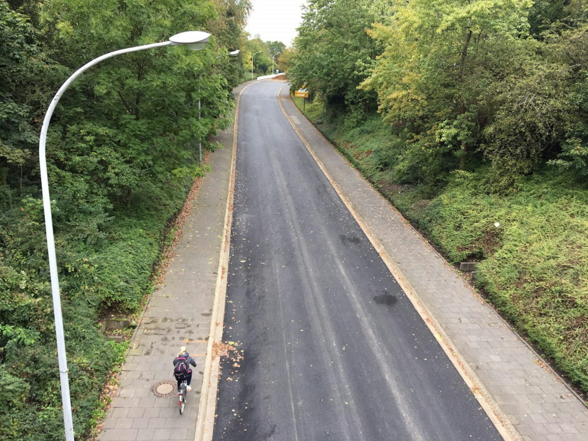 Radfahrer werden auf Höhe der Kreuzung von Römerstraße und Neue Bohle künftig auch auf der westlichen Seite der Römerstraße die Fahrbahn mitbenutzen. Dort wird ein Schutzstreifen markiert.