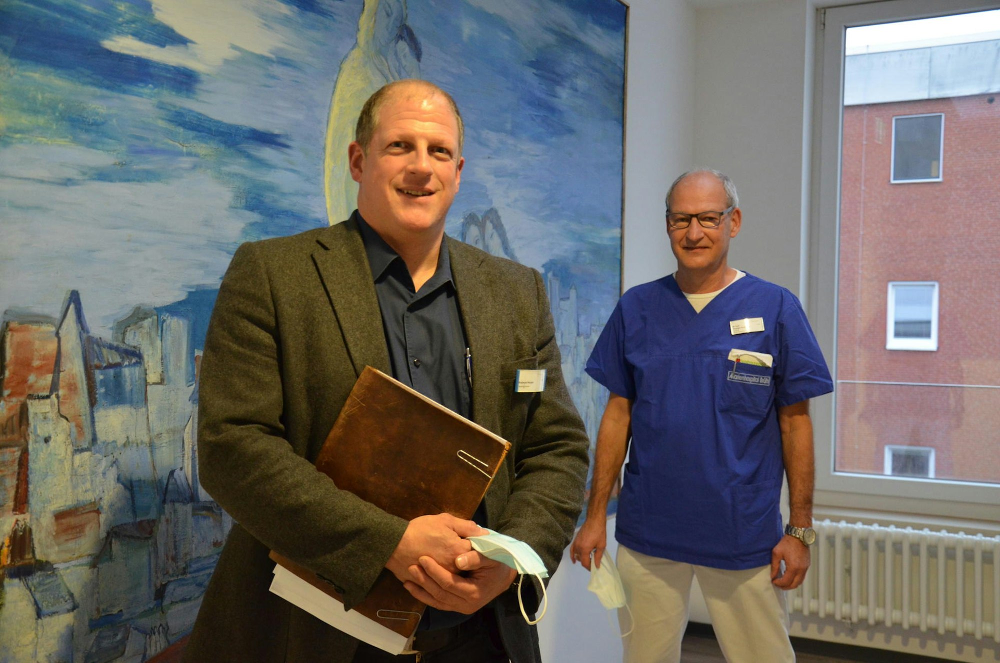Lediglich für das Foto haben Marienhospital-Geschäftsführer Andreas Heuser (l.) und Dr. Thomas Kaufmann, Chefarzt der Inneren Medizin, ihre Masken abgenommen.