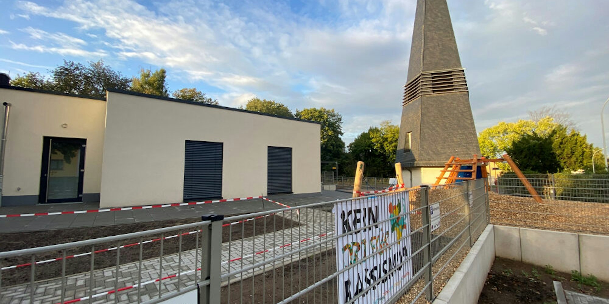 Die evangelische Kita Rodderweg wurde um eine weiteres Gebäude ergänzt. An dessen Platz stand von 1975 bis zum Abbruch im vergangenen Jahr die Johanneskirche, deren Turm erhalten blieb.