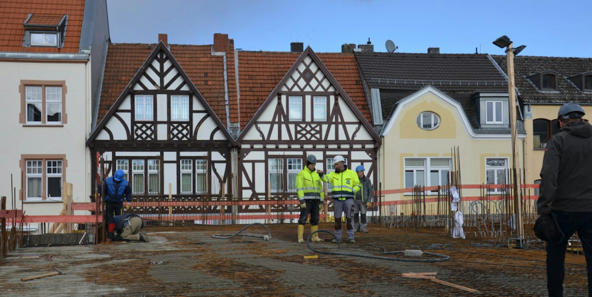 Das Verfahren schont Ressourcen und wurde laut Hersteller auch bei der Elbphilharmonie eingesetzt. In Brühl verschafft die besondere Deckenkonstruktion der Gestaltung des Rathausanbaus neue Möglichkeiten. Das verglaste Foyer kommt dank der vergleichsweise leichten Decke ohne stützende Säulen aus. Künftig reicht damit der Blick vom Janshof durch das Erdgeschoss bis hinüber zum Steinweg. Mujanovic ist stolz, bei dem Bau in Brühl mitzuwirken. Man spüre das große Interesse der Bevölkerung an dem neuen Gebäude, sagt er. Auf der anderen Seite bringe eine Baustelle mitten in der Stadt Einschränkungen mit sich. „Wir versuchen, so leise wie möglich zu arbeiten“, sagt er. Selbst laut spielende Radios seien tabu.