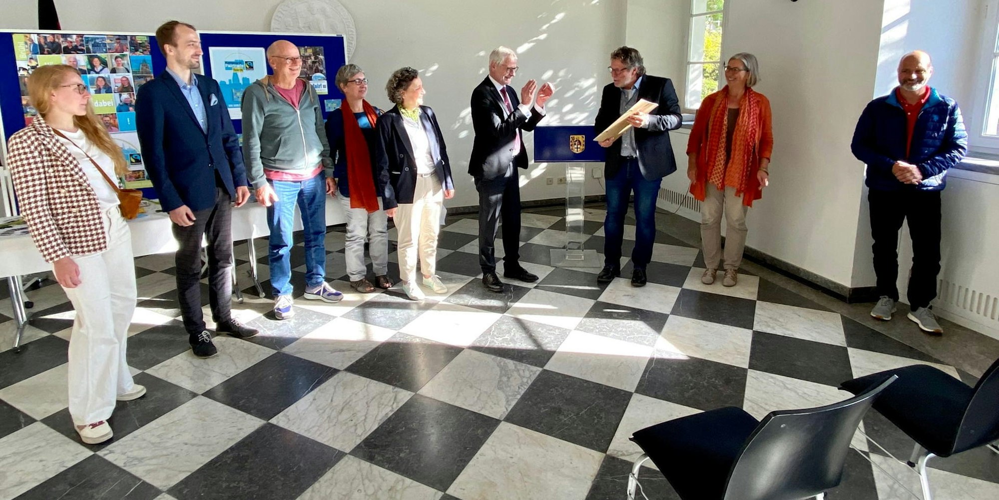 Heinz Fuchs (2. v. r.) überreichte Bürgermeister Dieter Freytag die Urkunde als Fair-Trade-Town.