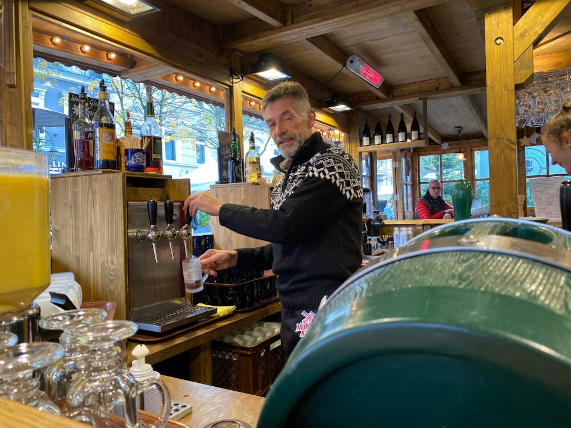 Sandra Nerlich ist davon überzeugt, dass die Vorschriften die meisten Menschen nicht von einem Besuch des Weihnachtsmarkts abhalten. „Die Leute wollen raus, etwas sehen und andere Menschen treffen“, sagt die Mitarbeiterin des Reibekuchen-Verkaufs „Bei der Tant“. Ihr Chef Mo Eschholz, der seit rund 30 Jahren seine nach eigenem Rezept handgemachten Kartoffelpuffer anbietet, hofft, dass die Behörden nicht noch ein Kapitel der wechselhaften Vorgaben schreiben. „Dieses Hin und Her muss aufhören“, sagt er.