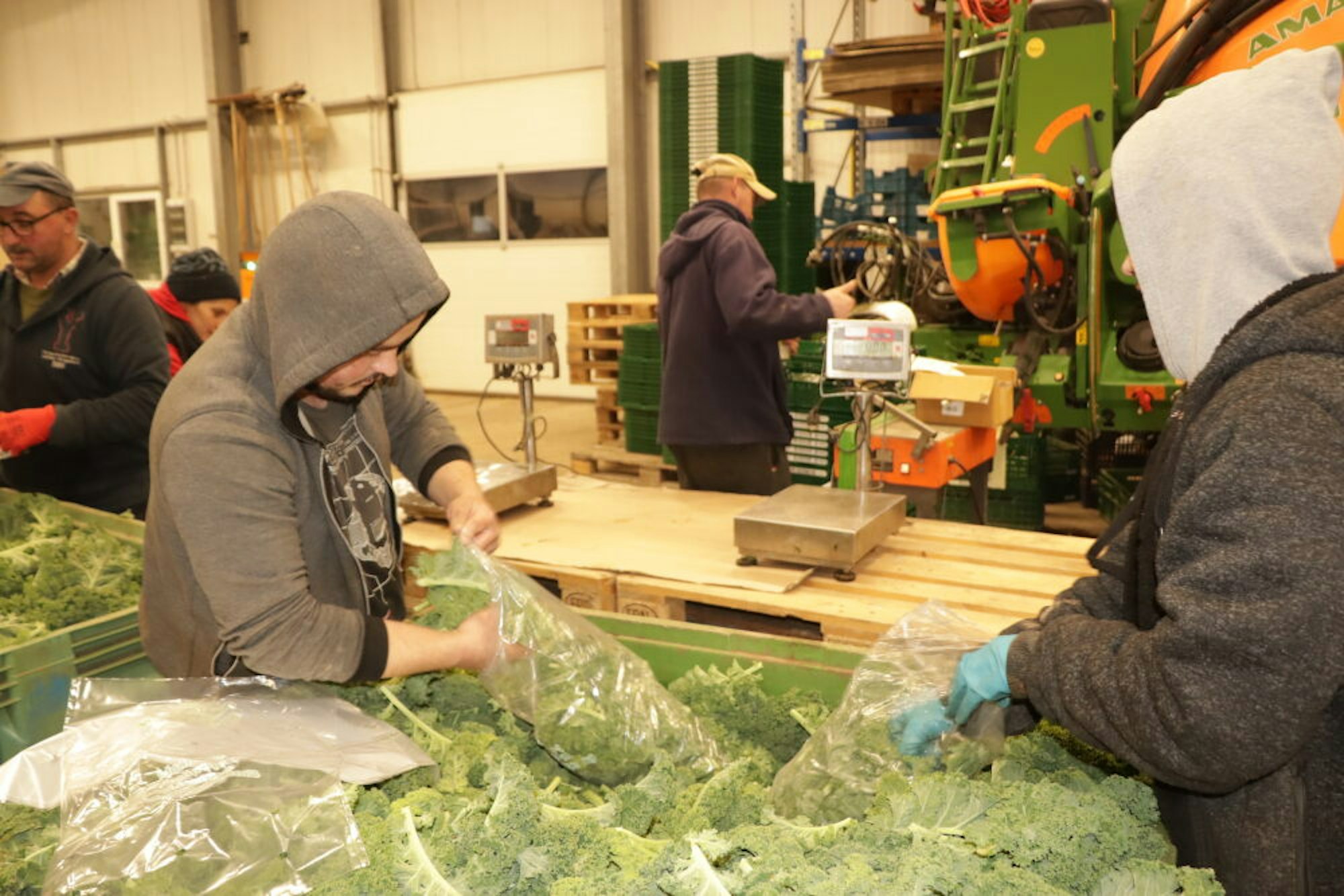 In der Halle wird der Grünkohl gewaschen, abgewogen und verpackt.