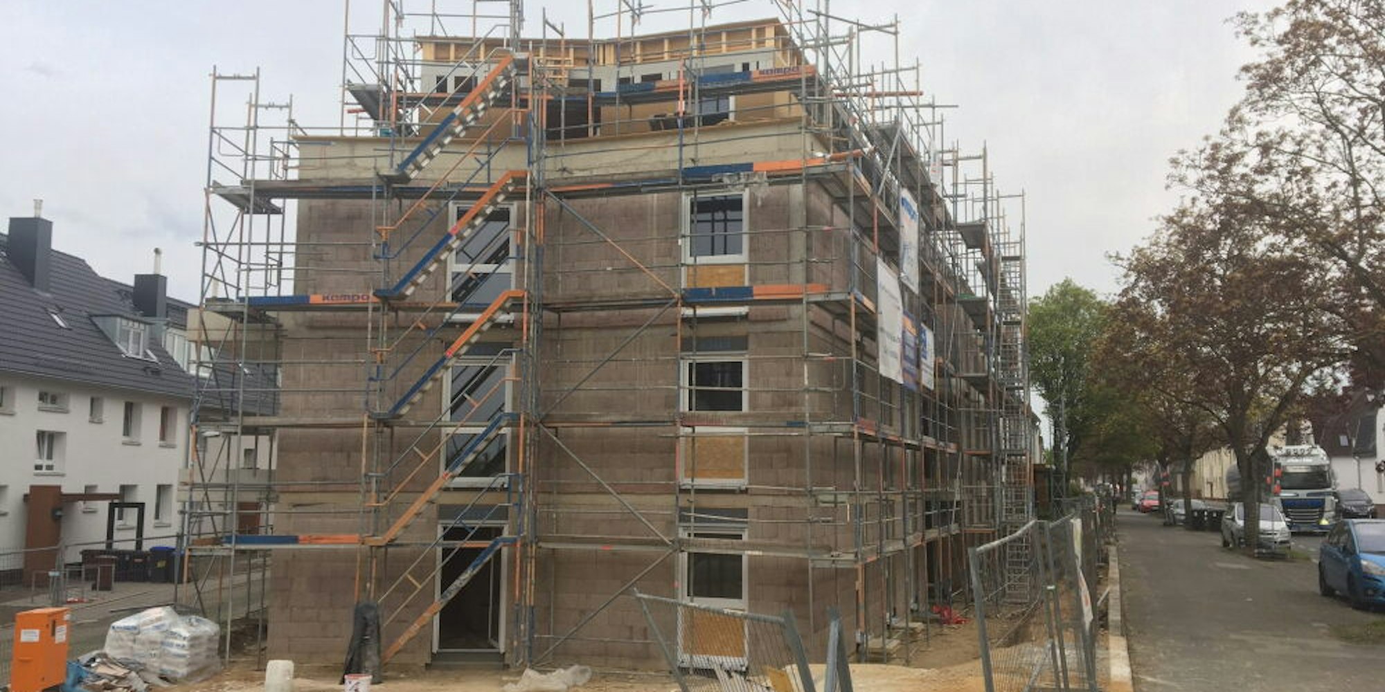 Rohbau steht bereitsHier entstehen 18 neue Wohnungen in Brühl