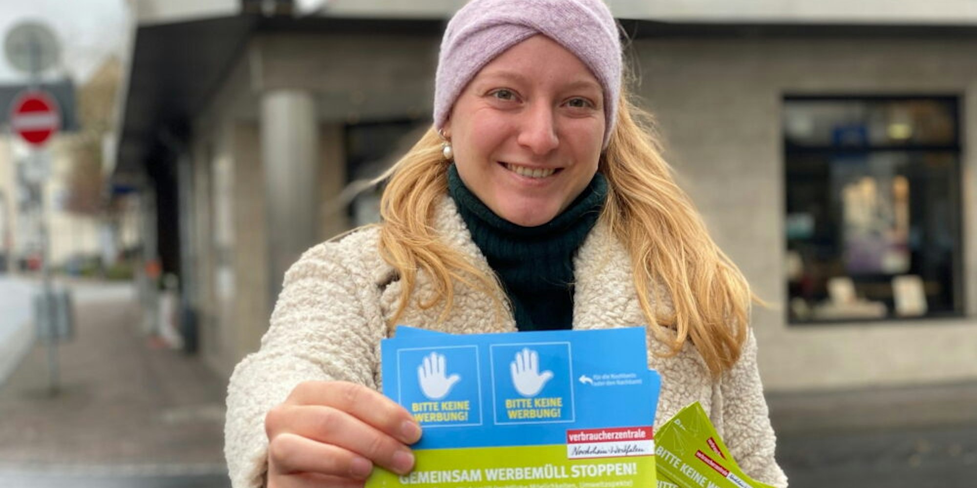 Die Expertin hat auch Zahlen bei der Hand, die die Dimension des Problems verdeutlichen: „Nach einer aktuellen Erhebung der Universität Gießen kommen im Jahr schätzungsweise zwischen 1,3 und 1,83 Millionen Tonnen Papier für unadressierte Werbung zusammen – das sind bis zu zehn Prozent des gesamten deutschen Papierkonsums.“ Werbebriefe, Postwurfsendungen, Prospekte seien oft nicht erwünscht und landeten ungelesen in die Altpapiertonnen. „Wie Umfragen und Beschwerden bei den Verbraucherzentralen zeigen, sind viele Verbraucher und Verbraucherinnen genervt von der Werbeflut“, sagt Bohnenberger.