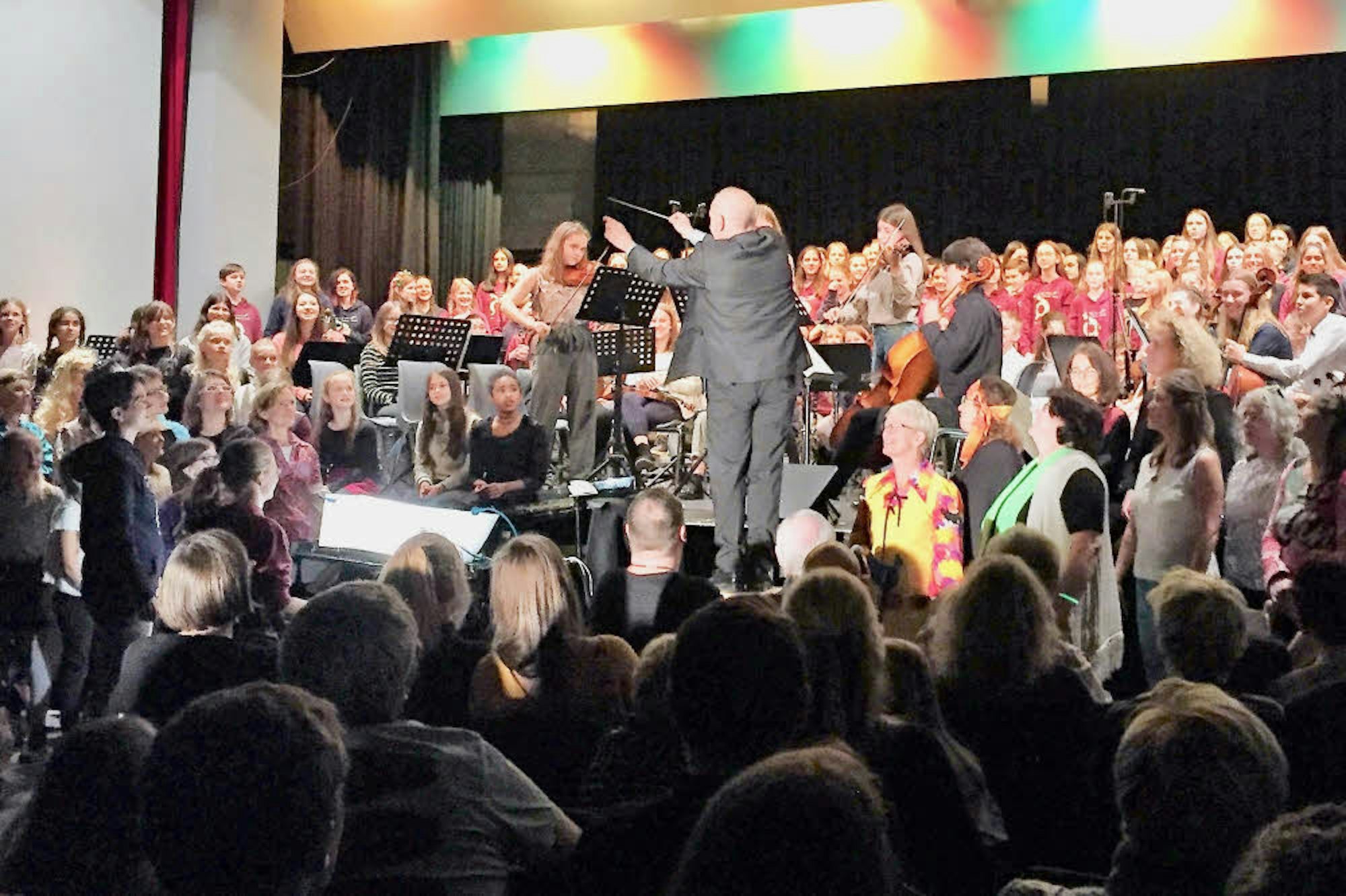 Nich beim jüngsten Schulkonzert dirigierte der scheidenende Rektor des Max-Ernst-Gymnasiums, Berthold Phiesel, rund 300 Schüler, Lehrer und Eltern beim Titel „Thank you for the Music“.