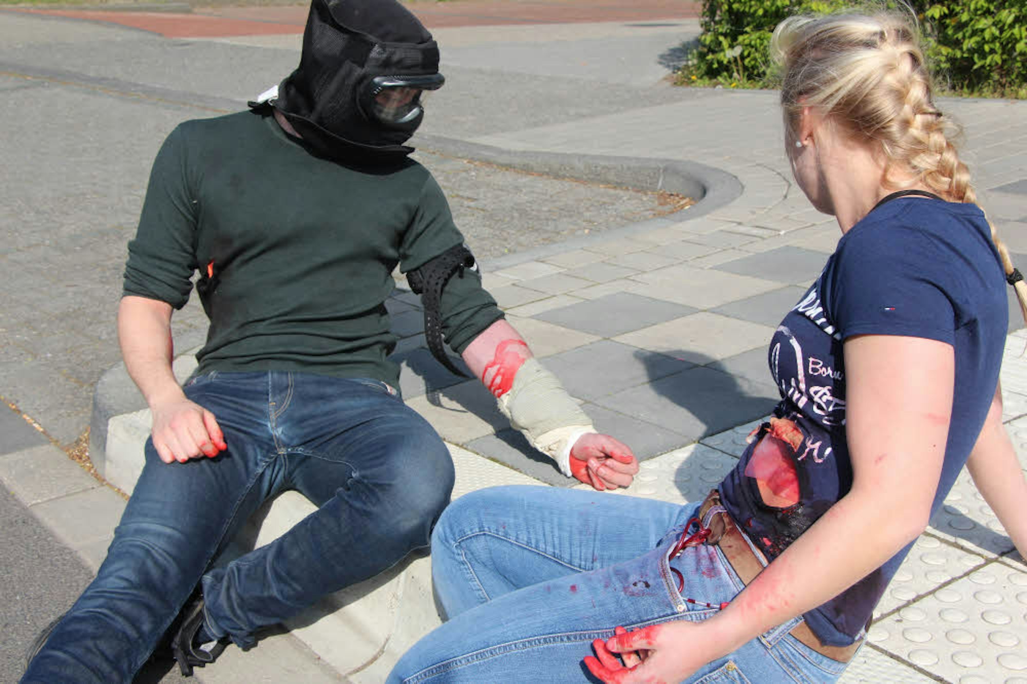 Täuschend echt sahen die Schussverletzungen der Statisten aus. Theaterschminke machte das möglich.