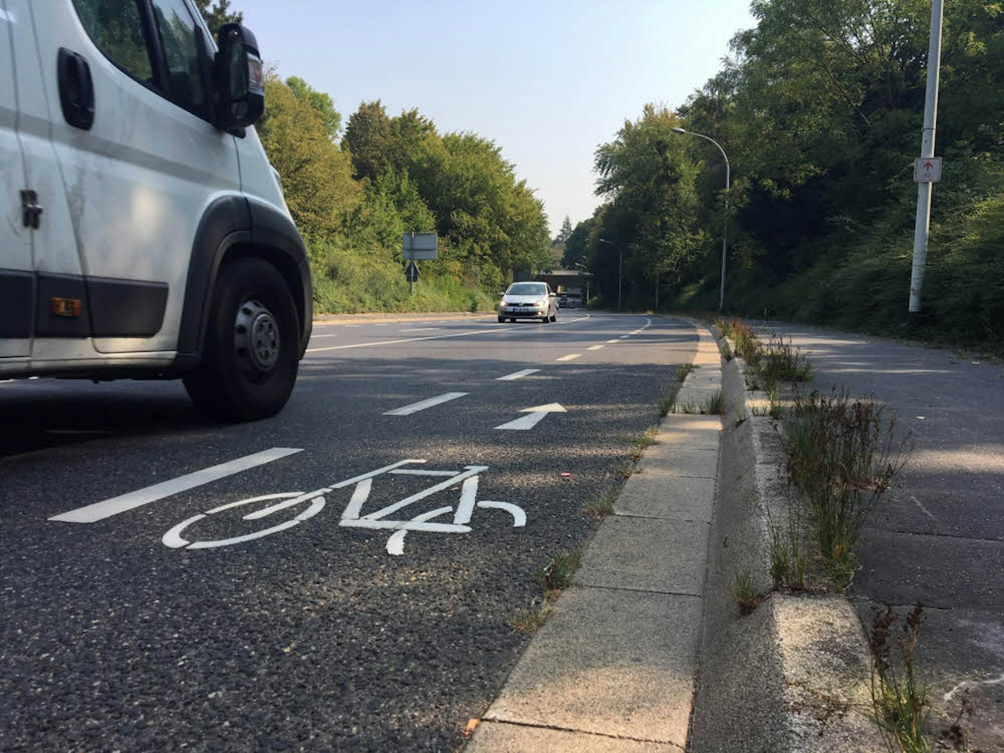 Auf einer durch Markierungen oder Poller gekennzeichneten und vom motorisierten Verkehr getrennten Spur sollten Radler künftig in beide Richtungen fahren. „Wir haben das Vorhaben prüfen lassen, aber für eine Umsetzung ist die Straße zu schmal“, erklärte der Technische Beigeordnete der Stadt Brühl, Gerd Schiffer.