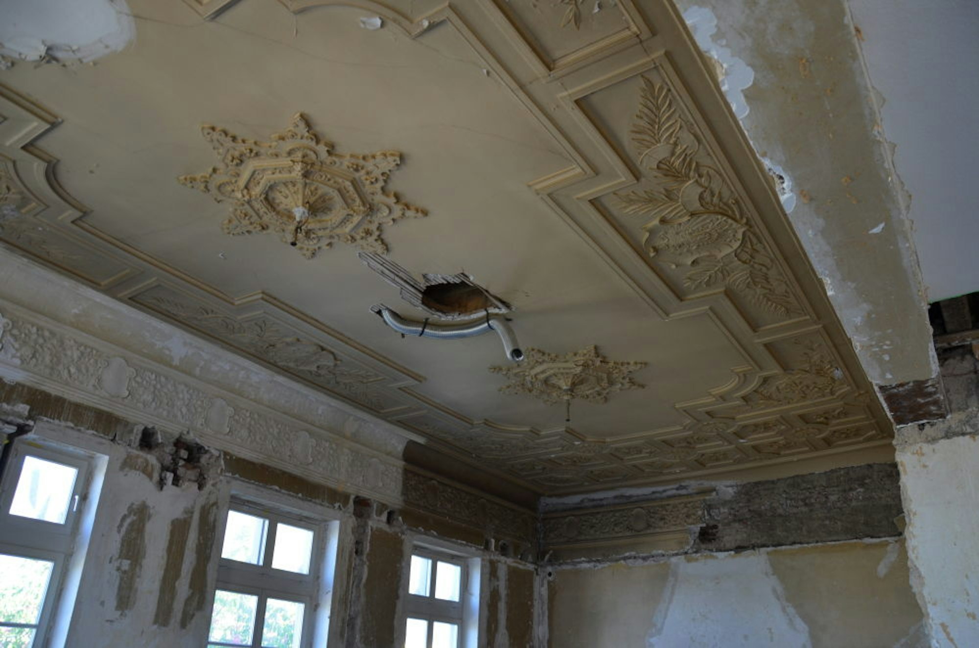 - Ein besonderer Blickfang dürfte die Stuckdecke werden, auf welche die Arbeiter während der Sanierung stießen.