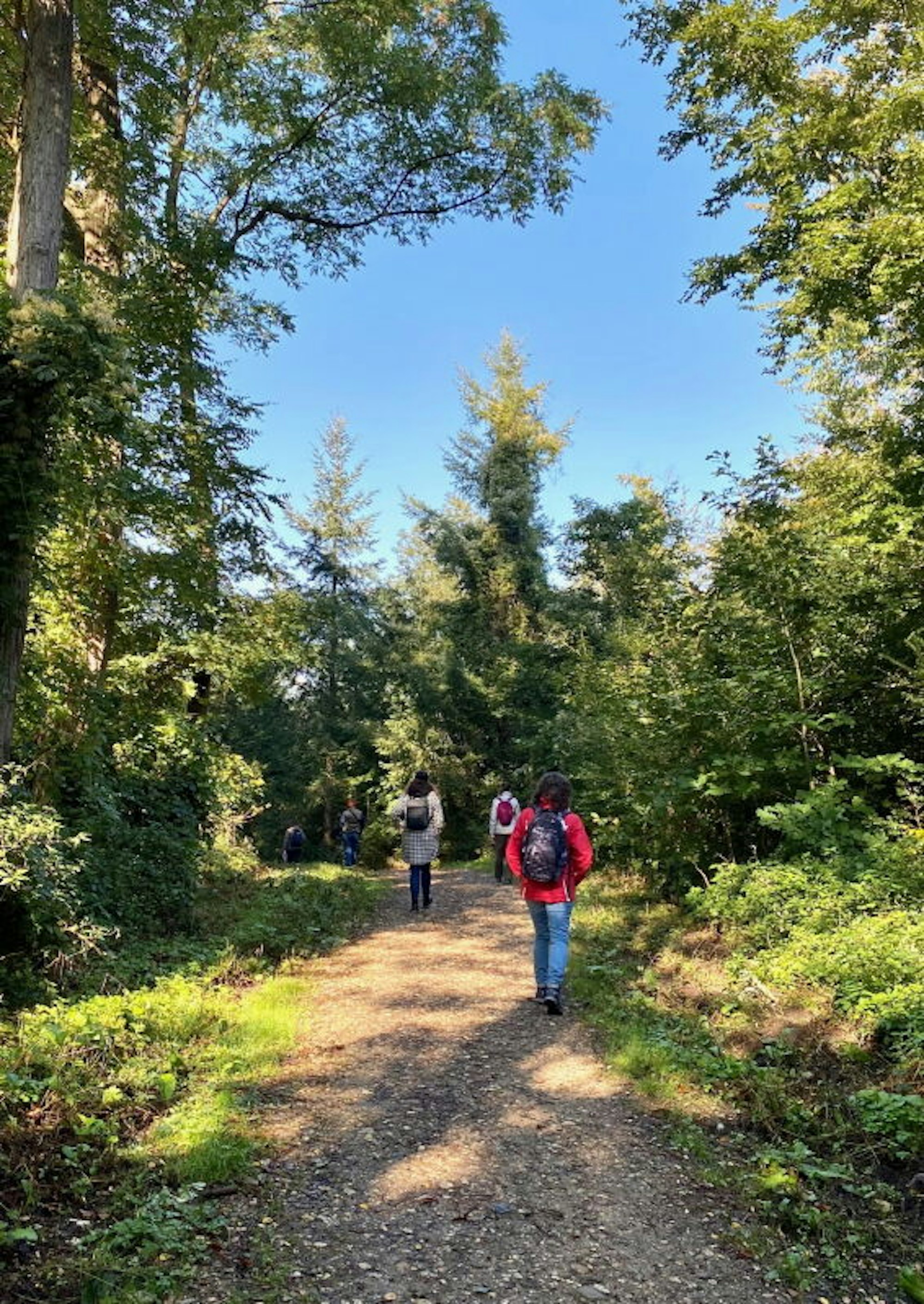 Die Teilnehmerinnen schlendern weiter, jede in ihrem eigenen Tempo. Lange Strecken legen sie nicht zurück, alles wirkt entschleunigt. Badem beschreibt die wohltuende Wirkung: „Das Stresslevel sinkt zwischen den Bäumen. Das Herz schlägt ruhiger, der Blutdruck sinkt, die Atmung wird tiefer. Die Menschen sind umgeben von ständigen Angeboten und Sinnesreizen, das belastet Körper und Geist. Im Wald dagegen gibt es ein ruhiges Spiel von Licht und Schatten. Der Lärm ist gedämpft oder weit weg.“