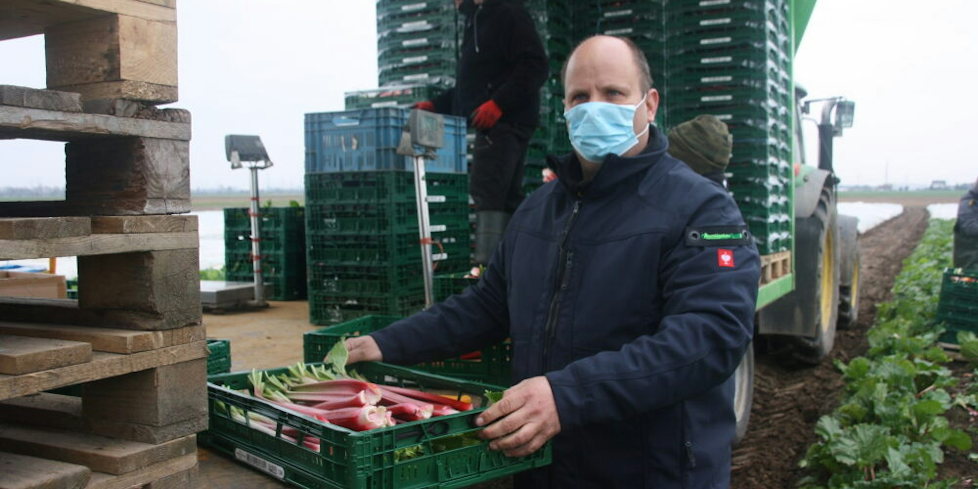Möglich ist die frühe Ernte allerdings nur, weil Markus Recht bereits Mitte Januar mit der Feldarbeit begonnen hat. „Nach der Kältephase, die die Rhabarber-Pflanzen brauchen, um überhaupt auszutreiben, haben wir ihn mit doppelter Folie abgedeckt“, erläutert der 46-jährige Landwirt aus Brühl-Schwadorf.