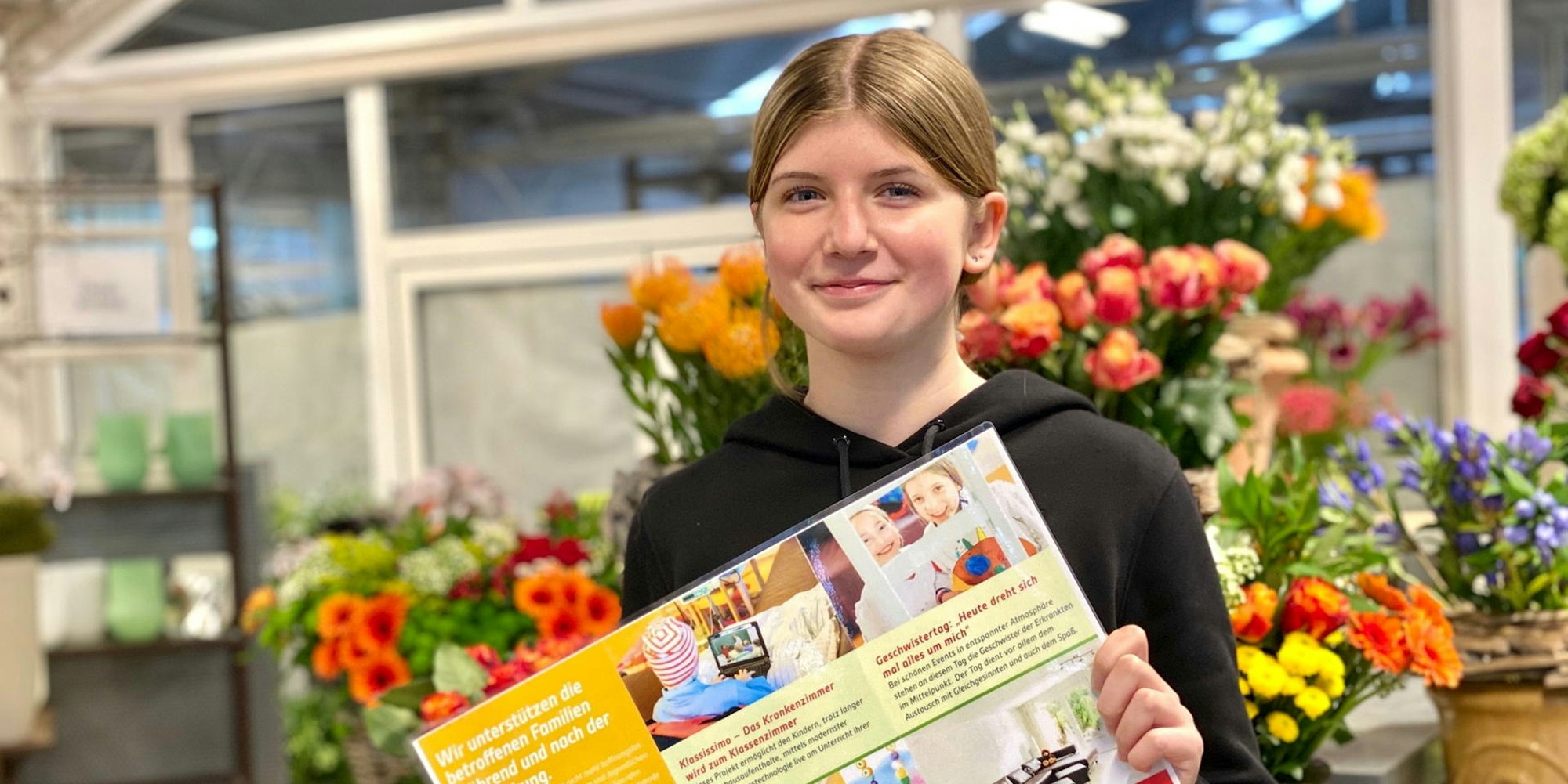 So kam sie auf die Idee, im Blumengeschäft ihres Vaters Marcel Schmitz (46) und am Stand auf dem Brühler Wochenmarkt Erdbeeren und Spargel zu verkaufen. Mit Unterstützung des Vaters wurden die Produkte organisiert. „Damit waren die Samstage auf dem Markt immer fest verplant“, erzählt Annika Schmitz. In der Adventszeit vor zwei Jahren startete sie eine weitere Aktion. Unter dem Motto „Kinder helfen Kindern“ wurden zugunsten krebskranker Kinder Weihnachtsbäume auf dem Markt angeboten. Frisch geschlagen half die ganze Familie, sie aus dem Sauerland zu holen. Das ist auch in diesem Winter wieder vorgesehen.