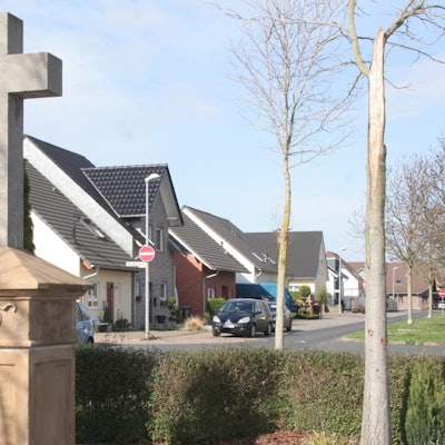 Brühl-Schwadorf – Noch wirkt das Neubaugebiet im Schwadorfer Nordwesten nicht allzu spektakulär. Von der Straße An Hornsgarten ausgehend verlaufen asphaltierte, von Straßenlaternen gesäumte Wege durch die Felder, ein gutes Stück von der bestehenden Bebauung entfernt ziehen Arbeiter die ersten Mauern eines Hauses hoch, und einige Meter weiter wartet ein 5000 Quadratmeter großes Versickerungsbecken auf Tage mit starkem Regen. Das ist aber nur der Anfang.
