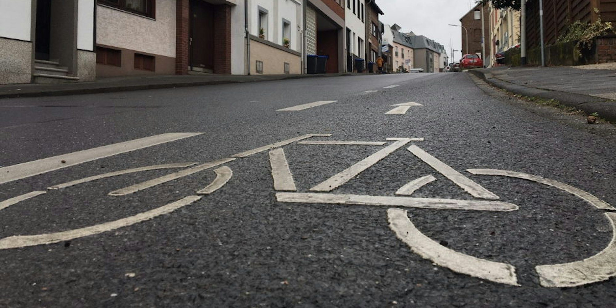 Anwohner befürchten gefährliche Situationen für Radler, die die recht enge Schulstraße in Brühl-Kierberg entlang fahren.