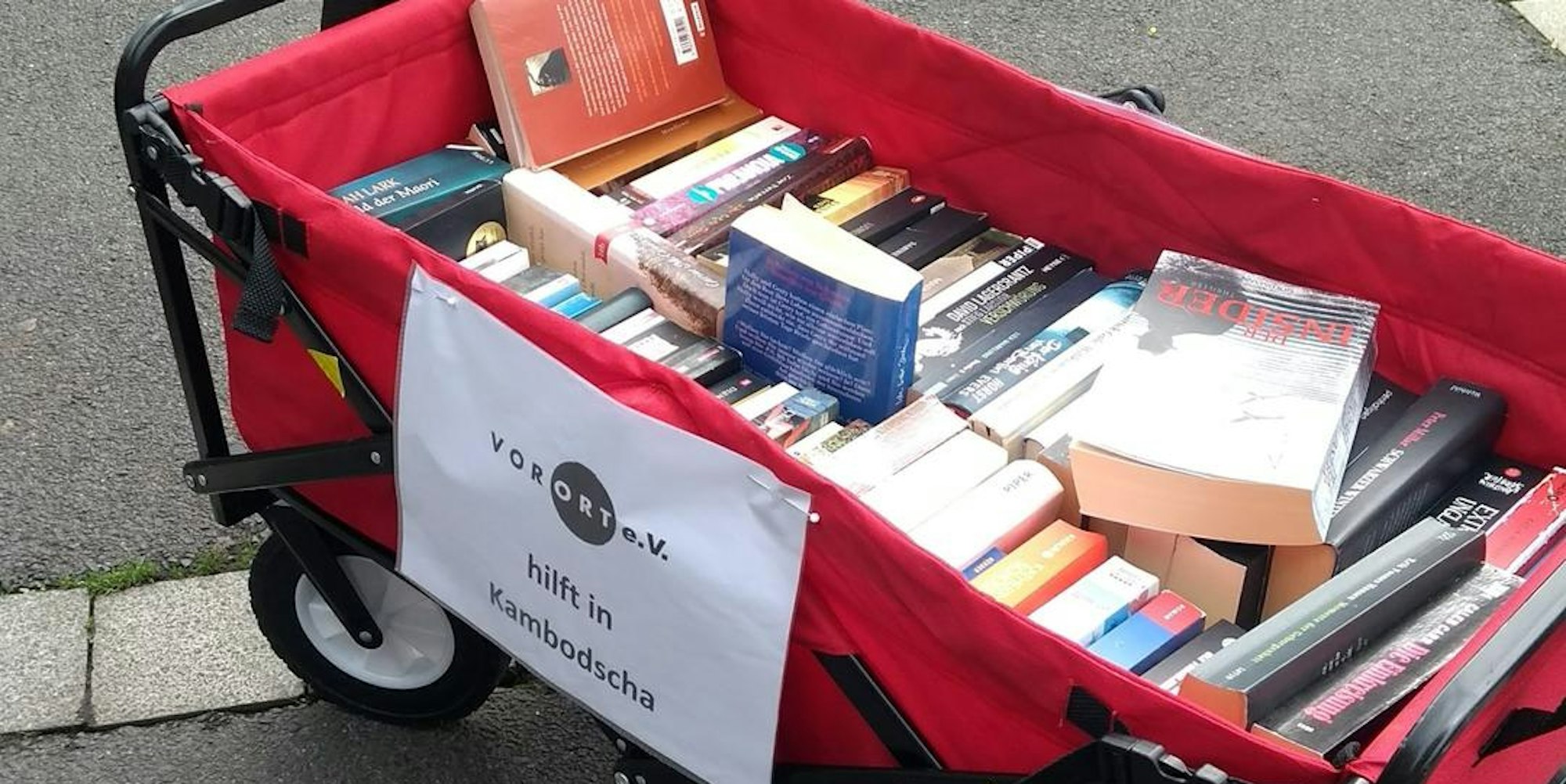 Unbekannte stahlen den Bollerwagen des karitativen Verein „Vor Ort“, in dem Bücher zum Kauf angeboten werden.